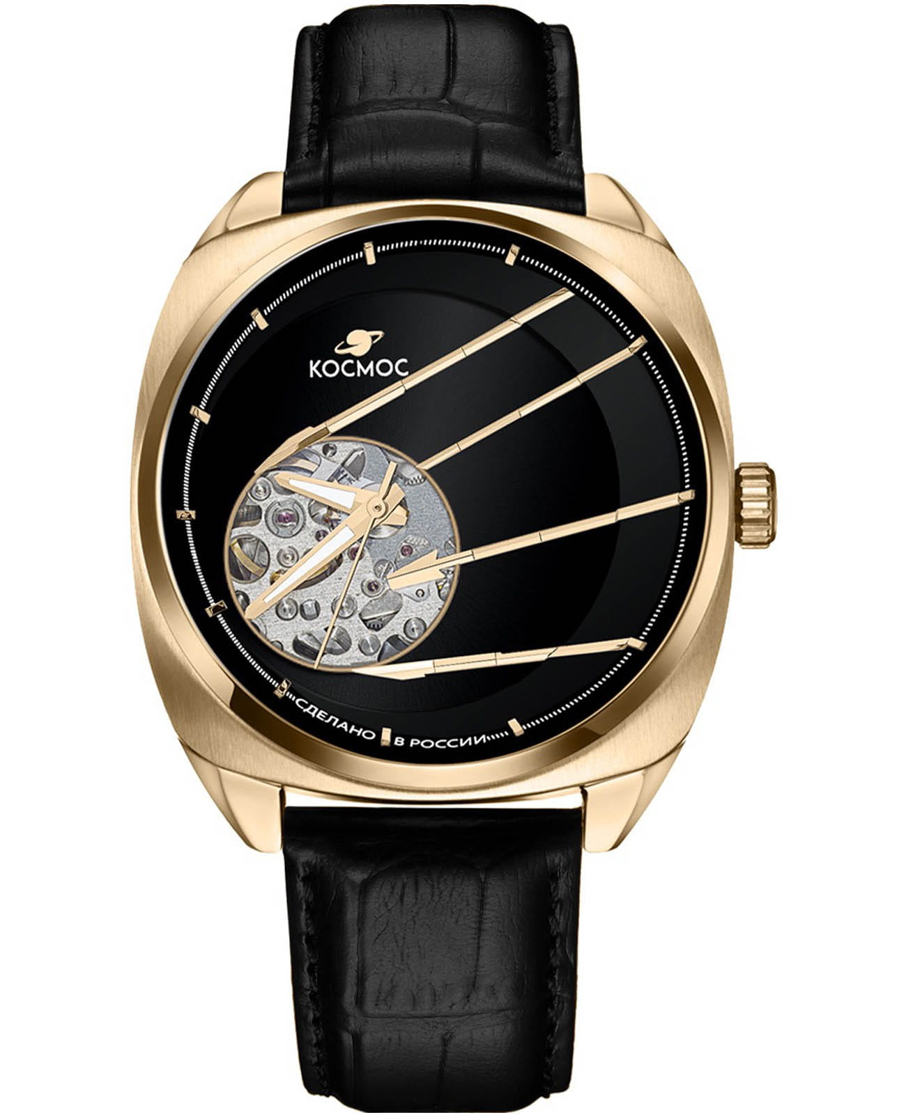Мужские наручные часы Космос Спутник K 115.21.31 — это уникальная лимитированная серия, созданная в честь исторического запуска первого искусственного спутника Земли. В корпусе необычной круглой формы, выполненном из гипоаллергенной нержавеющей стали с PVDPVDУльтратонкое покрытие наносится в технике вакуумного напыления, сочетает в себе нитрид титана особой прочности со слоем золота или оксида хрома. Несёт в себе декоративную или защитную функцию. покрытием, работает надежный механический механизм с автоподзаводом от японской компании Seiko. Прозрачная задняя крышка, закрепленная на четырех винтах, открывает вид на сложный механизм, а на самой крышке указан индивидуальный номер модели в формате хх/50. Скелетонизированный черный циферблат защищен сапфировым стекломСапфировое стеклоПрочный и надёжный материал из кристалла сапфира синтетического происхождения, характеризующийся особой твёрдостью и устойчивостью к царапинам и повреждениям. с антибликовым покрытиемАнтибликовое покрытиеСлой оксида металла в 0,13-0,3 микрон, благодаря которому стекло часов не бликует и не отражает свет. Антибликовое покрытие уменьшает отражение света в 10 раз, обеспечивая отличную читаемость показателей циферблата., которое обеспечивает максимальную устойчивость к царапинам и идеальную видимость в любых условиях. Украшением циферблата служат крупные стрелки с люминесцентным покрытиемЛюминесцентное покрытиеПозволяет считывать показания времени в темноте. Производители наносят на стрелки, часовые индексы, безель или поверхность циферблата светонакопительный состав, дающий холодное свечение., а также специальная апертура, окаймленная элементами, напоминающими антенны Спутника. Часовая и минутная стрелки отлично читаются благодаря своему размеру и светящемуся покрытию. Браслет из натуральной кожи черного цвета дополнен удобной застежкой-бабочкой с двумя боковыми кнопкамиЗастёжка "бабочка"Такой вид застёжки дополняется предохранителями, помогающими избежать случайного раскрытия браслета. Обладают изящным исполнением. , что гарантирует надежную фиксацию на руке. Водозащита до 10 атм (WR100) позволяет использовать часы при плавании и других водных видах спорта без акваланга. Коллекция Спутник — это выбор для ценителей истории космических достижений и современных технологий.