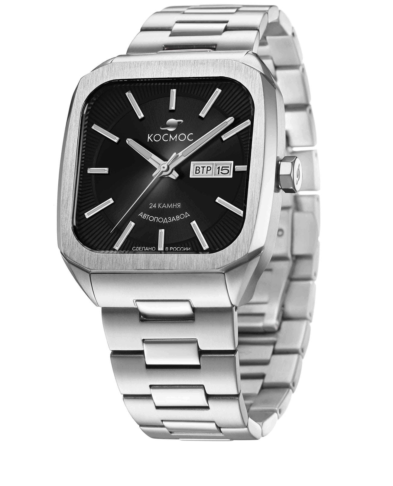Мужские наручные часы Космос Марсоход K 213.10.31 — это уникальная лимитированная серия, посвященная аппарату, способному передвигаться по поверхности Красной планеты. Марсоход ассоциируется с брутальностью, мастерством и технической сложностью. Наша страна дважды запускала подобные аппараты еще в 70-х годах прошлого века. Дизайн часов серии Марсоход вдохновлен лучшими работами советских мастеров, сочетая современные технологии часового искусства с обаянием стиля ретро. Корпус в форме квадрата с закругленными углами выполнен из нержавеющей стали марки 316L, украшенной зеркальной полировкой и сатинированием. Удобная заводная головка имеет форму гайки, что добавляет модели индустриальный шарм. Задняя крышка прозрачная, закрепленная на четырех винтах, и позволяет увидеть работу механизма TMI с подвижным ротором, на котором гравируется надпись «Сделано в России». Также здесь представлена гравировка с изображением космонавта, придающая часам особую значимость. Водостойкость достигает 10 атм (WR100), что позволяет использовать часы при плавании и других водных видах спорта. На задней крышке указан индивидуальный номер модели в формате от 01/50 до 50/50 (первый выпуск) или от 051/200 до 200/200 (второй выпуск). Объемный циферблат состоит из двух уровней. В центре движутся три стрелки, часовая и минутная из которых имеют люминесцентное покрытиеЛюминесцентное покрытиеПозволяет считывать показания времени в темноте. Производители наносят на стрелки, часовые индексы, безель или поверхность циферблата светонакопительный состав, дающий холодное свечение., позволяющее определять время даже в темноте. Индексы накладные, как и стальная рамка, выделяющая сдвоенное окошко даты и дня недели, где день недели отображается на двух языках — русском и английском. Циферблат защищен прочным сапфировым стеклом с антибликовым покрытиемСапфировое стеклоПрочный и надёжный материал из кристалла сапфира синтетического происхождения, характеризующийся особой твёрдостью и устойчивостью к царапинам и повреждениям., обеспечивающим отличную читаемость показаний в любых условиях. Браслет изготовлен из литых стальных звеньев нержавеющей стали 316L и оснащен удобной застёжкой «бабочка» с кнопкамиЗастёжка "бабочка"Такой вид застёжки дополняется предохранителями, помогающими избежать случайного раскрытия браслета. Обладают изящным исполнением. , которая сводит к минимуму вероятность потери. Заводная головка, застежка и браслет украшены фирменным логотипом бренда. Коллекция Марсоход — идеальный выбор для ценителей истории космических достижений и современных технологий.