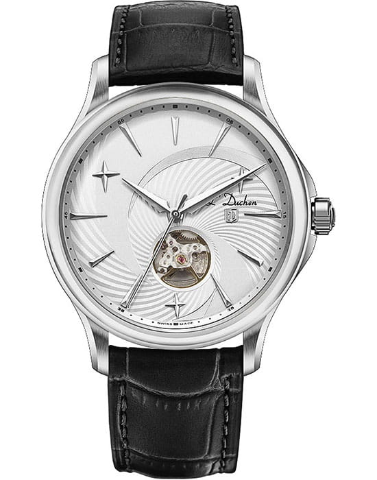 Мужские механические швейцарские часы с автоподзаводом LDuchen Supernova D 154.11.33, кварцевый механизм с высокой точностью. Сапфировое стеклоСапфировое стеклоПрочный и надёжный материал из кристалла сапфира синтетического происхождения, характеризующийся особой твёрдостью и устойчивостью к царапинам и повреждениям. устойчивое к появлению царапин, обладающее высокой прозрачностью. Корпус часов выполнен из нержавеющей стали. Класс водозащиты: 50 метров, позволит защитить корпус от случайных брызг или капель дождя. Кожаный ремешок на раскладной застёжкеРаскладная застёжкаТакой тип застёжки используется только на браслетах из металла. Она никогда не раскрывается полностью, происходит разделение на 2 и более частей. Раскладывающая застёжка снизит вероятность потери часов к минимуму..