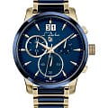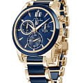 Мужские швейцарские часы-хронографХронографФункция позволяет измерять отрезки времени с особой точностью: часы, минуты, секунды. Верным признаком хронографа является наличие на циферблате 3 дополнительных окошек-счётчиков. L'Duchen Aerostat Chrono D 232.20.36, кварцевый механизм с высокой точностью. Сапфировое стеклоСапфировое стеклоПрочный и надёжный материал из кристалла сапфира синтетического происхождения, характеризующийся особой твёрдостью и устойчивостью к царапинам и повреждениям. устойчивое к появлению царапин, обладающее высокой прозрачностью. Корпус часов выполнен из нержавеющей стали с PVD-покрытиемPVDУльтратонкое покрытие наносится в технике вакуумного напыления, сочетает в себе нитрид титана особой прочности со слоем золота или оксида хрома. Несёт в себе декоративную или защитную функцию.. БезельБезельВнешний ободок, закрепляющий стекло. В спортивных часах так называется поворотное кольцо с делениями на циферблате, выполняет роль таймера – замеряет отрезки времени на шкале. Неподвижный безель – элемент декора. Однонаправленно вращающийся безель на дайверских часах позволяет фиксировать моменты погружения и выныривания на поверхность. из керамики. Стрелки с люминесцентным покрытиемЛюминесцентное покрытиеПозволяет считывать показания времени в темноте. Производители наносят на стрелки, часовые индексы, безель или поверхность циферблата светонакопительный состав, дающий холодное свечение.. Класс водозащиты: 100 метров, позволит плавать, нырять и заниматься другими водными видами спорта. Стальной браслет с PVD-покрытиемPVDУльтратонкое покрытие наносится в технике вакуумного напыления, сочетает в себе нитрид титана особой прочности со слоем золота или оксида хрома. Несёт в себе декоративную или защитную функцию. и керамическими вставками на застёжке «бабочка» с кнопкамиЗастёжка "бабочка"Такой вид застёжки дополняется предохранителями, помогающими избежать случайного раскрытия браслета. Обладают изящным исполнением. .