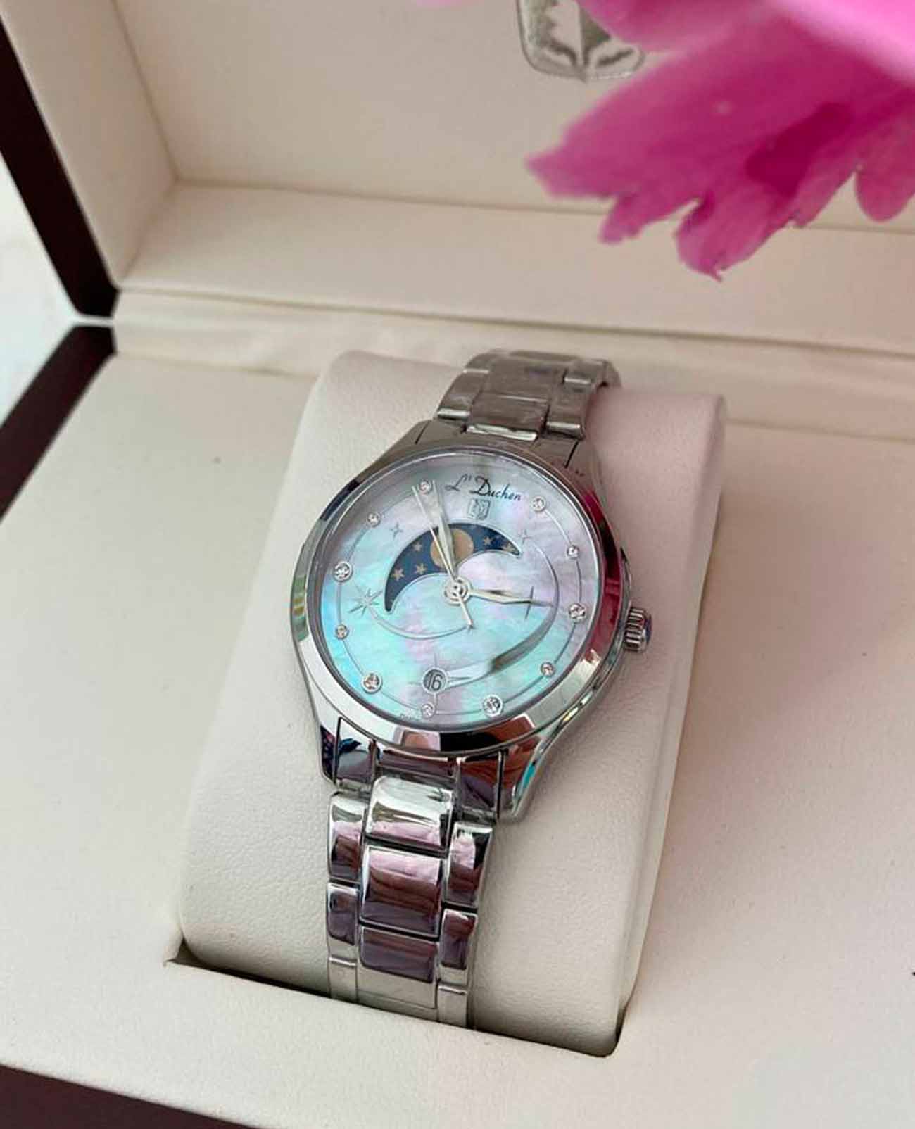 Женские швейцарские часы L'Duchen Perseides D 837.10.43, кварцевый механизм с высокой точностью. Сапфировое стеклоСапфировое стеклоПрочный и надёжный материал из кристалла сапфира синтетического происхождения, характеризующийся особой твёрдостью и устойчивостью к царапинам и повреждениям. устойчивое к появлению царапин, обладающее высокой прозрачностью. Корпус часов выполнен из нержавеющей стали. Циферблат украшен фианитами. Класс водозащиты: 50 метров, позволит защитить корпус от случайных брызг или капель дождя. Стальной браслет на застёжке «бабочка» с кнопкамиЗастёжка "бабочка"Такой вид застёжки дополняется предохранителями, помогающими избежать случайного раскрытия браслета. Обладают изящным исполнением. .