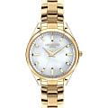 Женские наручные часы Lee Cooper LC07453.120 — это элегантная модель с утончённым дизайном. Корпус диаметром 33 мм выполнен из нержавеющей стали с IP-покрытиемIP-покрытиеМетод ионного напыления. Демонстрирует повышенную устойчивость к истиранию, окислению и химическим веществам. Под воздействием высокого давления и температуры около 1500°C молекулы металла надёжно соединяются с частицами корпуса часов., что придаёт часам изысканный вид. Перламутровый циферблат украшен изящными метками и стрелками обеспечивая удобное считывание времени. Циферблат защищён минеральным стекломМинеральное стеклоМинеральное стекло представляет собой искусственно выращенный минерал кварца. Такое стекло отличается особой устойчивостью к повреждениям и царапинам. Уступает по некоторым качествам сапфировому стеклу., устойчивым к царапинам. Часы работают на кварцевом механизме, обеспечивая точность хода. Браслет из нержавеющей стали с раскладной застёжкойРаскладная застёжкаТакой тип застёжки используется только на браслетах из металла. Она никогда не раскрывается полностью, происходит разделение на 2 и более частей. Раскладывающая застёжка снизит вероятность потери часов к минимуму. гарантирует комфортное ношение и надёжную фиксацию на запястье. Водозащита 30 метров защищает часы от случайных брызг и дождя, делая их подходящими для повседневного использования.