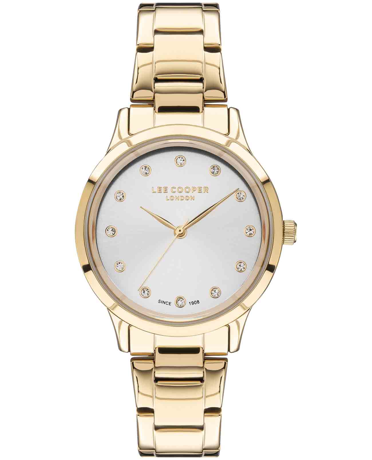 Женские наручные часы Lee Cooper LC07457.130 — это элегантная модель с утончённым дизайном. Корпус диаметром 34 мм выполнен из суперметалла с IP-покрытиемIP-покрытиеМетод ионного напыления. Демонстрирует повышенную устойчивость к истиранию, окислению и химическим веществам. Под воздействием высокого давления и температуры около 1500°C молекулы металла надёжно соединяются с частицами корпуса часов., что придаёт часам изысканный вид. Серебристый циферблат украшен изящными вставками из кристаллов и стрелками, обеспечивая удобное считывание времени. Циферблат защищён минеральным стекломМинеральное стеклоМинеральное стекло представляет собой искусственно выращенный минерал кварца. Такое стекло отличается особой устойчивостью к повреждениям и царапинам. Уступает по некоторым качествам сапфировому стеклу., устойчивым к царапинам. Часы работают на кварцевом механизме, обеспечивая точность хода. Браслет из нержавеющей стали с раскладной застёжкойРаскладная застёжкаТакой тип застёжки используется только на браслетах из металла. Она никогда не раскрывается полностью, происходит разделение на 2 и более частей. Раскладывающая застёжка снизит вероятность потери часов к минимуму. гарантирует комфортное ношение и надёжную фиксацию на запястье. Водозащита 30 метров защищает часы от случайных брызг и дождя, делая их подходящими для повседневного использования.