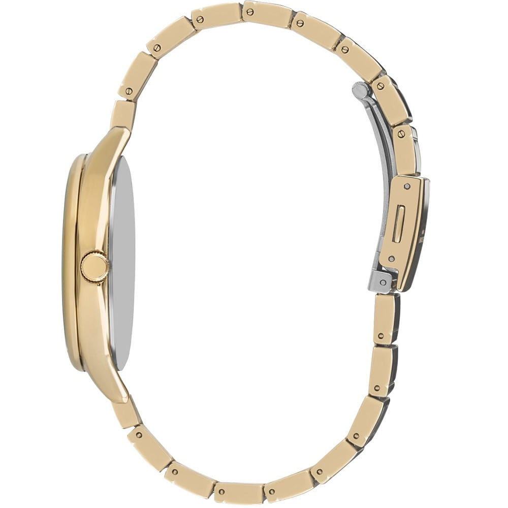 Женские наручные часы Lee Cooper LC07482.130 — это элегантная модель с утончённым дизайном. Корпус диаметром 36 мм выполнен из суперметалла с IP-покрытиемIP-покрытиеМетод ионного напыления. Демонстрирует повышенную устойчивость к истиранию, окислению и химическим веществам. Под воздействием высокого давления и температуры около 1500°C молекулы металла надёжно соединяются с частицами корпуса часов., что придаёт часам изысканный вид. Серебристый циферблат украшен изящными метками с кристаллами и стрелками, обеспечивая удобное считывание времени. Циферблат защищён минеральным стекломМинеральное стеклоМинеральное стекло представляет собой искусственно выращенный минерал кварца. Такое стекло отличается особой устойчивостью к повреждениям и царапинам. Уступает по некоторым качествам сапфировому стеклу., устойчивым к царапинам. Часы работают на кварцевом механизме, обеспечивая точность хода. Браслет из нержавеющей стали с раскладной застёжкойРаскладная застёжкаТакой тип застёжки используется только на браслетах из металла. Она никогда не раскрывается полностью, происходит разделение на 2 и более частей. Раскладывающая застёжка снизит вероятность потери часов к минимуму. гарантирует комфортное ношение и надёжную фиксацию на запястье. Водозащита 30 метров защищает часы от случайных брызг и дождя, делая их подходящими для повседневного использования. Имеют встроенный календарь с отображением даты, дня недели и 24-часового формата, что делает их идеальными для организации вашего дня.