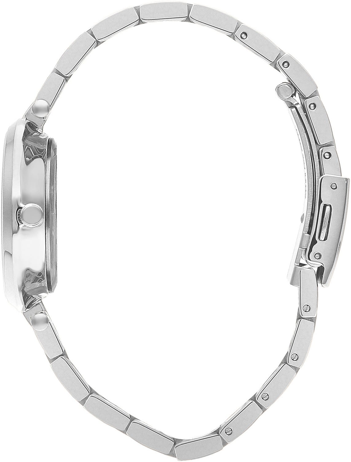 Женские часы Lee Cooper LC07591.390 — это стильное сочетание элегантности и современного дизайна. Круглый корпус диаметром 33 мм выполнен из суперметалла серебристого цвета. Циферблат инкрустирован цирконами, что придает модели особый блеск и защищен минеральным стекломМинеральное стеклоМинеральное стекло представляет собой искусственно выращенный минерал кварца. Такое стекло отличается особой устойчивостью к повреждениям и царапинам. Уступает по некоторым качествам сапфировому стеклу., обеспечивающим устойчивость к царапинам. Центральные часовая, минутная и секундная стрелки. Часы оснащены надежным кварцевым механизмом, источник питания - батарейка. Металлический браслет на раскладной застёжкеРаскладная застёжкаТакой тип застёжки используется только на браслетах из металла. Она никогда не раскрывается полностью, происходит разделение на 2 и более частей. Раскладывающая застёжка снизит вероятность потери часов к минимуму. гарантирует комфортную посадку на запястье. Водозащита 30 метров защищает модель от случайных брызг и дождя. Lee Cooper — отличный выбор для тех, кто ценит утонченность и качество.