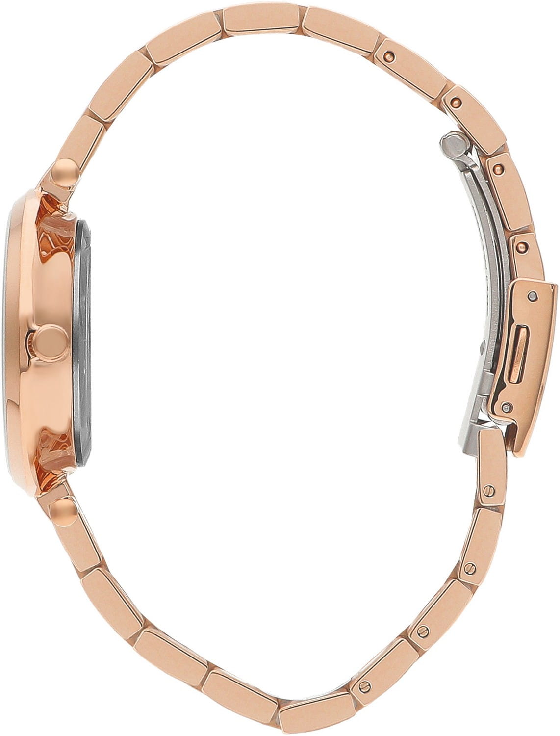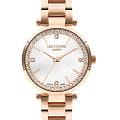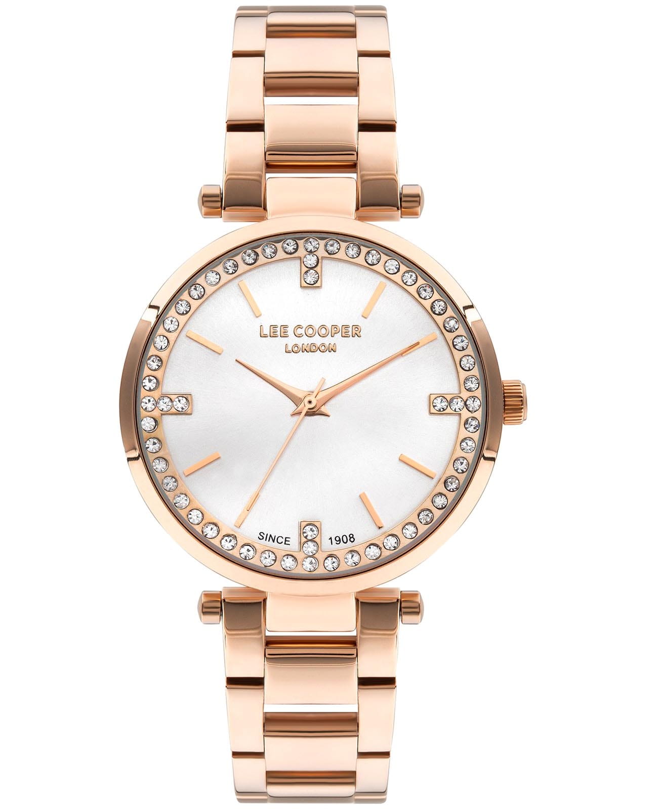 Женские часы Lee Cooper LC07591.430 — это стильное сочетание элегантности и современного дизайна. Круглый корпус диаметром 33 мм выполнен из суперметалла с IP-покрытиемIP-покрытиеМетод ионного напыления. Демонстрирует повышенную устойчивость к истиранию, окислению и химическим веществам. Под воздействием высокого давления и температуры около 1500°C молекулы металла надёжно соединяются с частицами корпуса часов. цвета розового золота. Серебристый циферблат инкрустирован цирконами, что придает модели особый блеск и защищен минеральным стекломМинеральное стеклоМинеральное стекло представляет собой искусственно выращенный минерал кварца. Такое стекло отличается особой устойчивостью к повреждениям и царапинам. Уступает по некоторым качествам сапфировому стеклу., обеспечивающим устойчивость к царапинам. Центральные часовая, минутная и секундная стрелки. Часы оснащены надежным кварцевым механизмом, источник питания - батарейка. Металлический браслет с IP-покрытиемIP-покрытиеМетод ионного напыления. Демонстрирует повышенную устойчивость к истиранию, окислению и химическим веществам. Под воздействием высокого давления и температуры около 1500°C молекулы металла надёжно соединяются с частицами корпуса часов. на раскладной застёжкеРаскладная застёжкаТакой тип застёжки используется только на браслетах из металла. Она никогда не раскрывается полностью, происходит разделение на 2 и более частей. Раскладывающая застёжка снизит вероятность потери часов к минимуму. гарантирует комфортную посадку на запястье. Водозащита 30 метров защищает модель от случайных брызг и дождя. Lee Cooper  — отличный выбор для тех, кто ценит утонченность и качество.