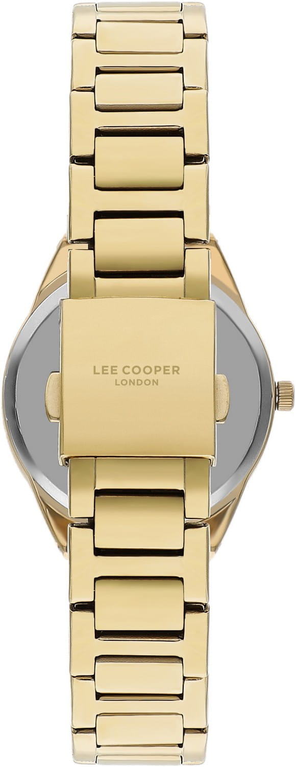 Женские часы Lee Cooper LC07643.130 — это стильное сочетание элегантности и современного дизайна. Круглый корпус диаметром 36 мм выполнен из суперметалла с IP-покрытиемIP-покрытиеМетод ионного напыления. Демонстрирует повышенную устойчивость к истиранию, окислению и химическим веществам. Под воздействием высокого давления и температуры около 1500°C молекулы металла надёжно соединяются с частицами корпуса часов. золотого цвета, придающий модели особый блеск. Серебристый циферблат защищен минеральным стекломМинеральное стеклоМинеральное стекло представляет собой искусственно выращенный минерал кварца. Такое стекло отличается особой устойчивостью к повреждениям и царапинам. Уступает по некоторым качествам сапфировому стеклу., обеспечивающим устойчивость к царапинам. Часы оснащены надежным кварцевым механизмом, а стальной браслет с IP-покрытиемIP-покрытиеМетод ионного напыления. Демонстрирует повышенную устойчивость к истиранию, окислению и химическим веществам. Под воздействием высокого давления и температуры около 1500°C молекулы металла надёжно соединяются с частицами корпуса часов. на раскладной застёжкеРаскладная застёжкаТакой тип застёжки используется только на браслетах из металла. Она никогда не раскрывается полностью, происходит разделение на 2 и более частей. Раскладывающая застёжка снизит вероятность потери часов к минимуму. гарантирует комфортную посадку на запястье. Мультифункциональная модель с индикацией даты, дня недели, с дополнительным 24-х часовым индикатором. Стрелки с люминесцентным покрытиемЛюминесцентное покрытиеПозволяет считывать показания времени в темноте. Производители наносят на стрелки, часовые индексы, безель или поверхность циферблата светонакопительный состав, дающий холодное свечение. позволяют легко считывать время даже в условиях недостаточного освещения. Водозащита 30 метров защищает модель от случайных брызг и дождя. Lee Cooper — отличный выбор для тех, кто ценит утонченность и качество.
