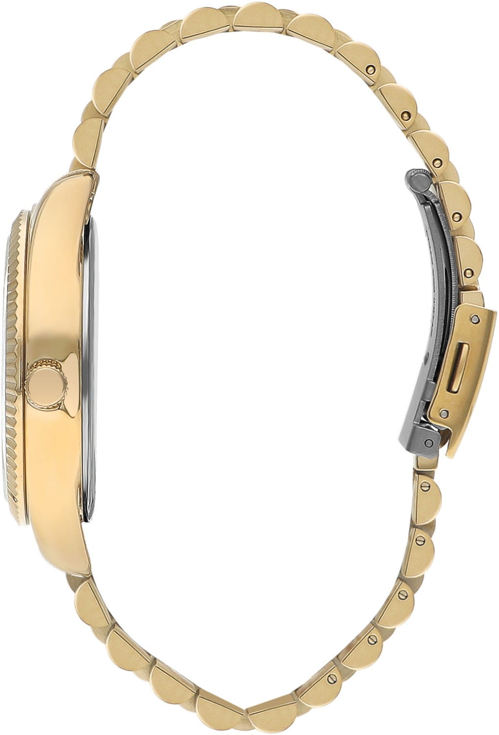 Женские наручные часы Lee Cooper LC07682.160 — это элегантная модель с утончённым дизайном. Корпус диаметром 35 мм выполнен из суперметалла с IP-покрытиемIP-покрытиеМетод ионного напыления. Демонстрирует повышенную устойчивость к истиранию, окислению и химическим веществам. Под воздействием высокого давления и температуры около 1500°C молекулы металла надёжно соединяются с частицами корпуса часов., придающий часам изысканный вид. Лаконичный циферблат украшен изящными стрелками, обеспечивая удобное считывание времени. Циферблат защищён минеральным стекломМинеральное стеклоМинеральное стекло представляет собой искусственно выращенный минерал кварца. Такое стекло отличается особой устойчивостью к повреждениям и царапинам. Уступает по некоторым качествам сапфировому стеклу., устойчивым к царапинам. Часы работают на кварцевом механизме, обеспечивая точность хода. Браслет из нержавеющей стали с IP-покрытиемIP-покрытиеМетод ионного напыления. Демонстрирует повышенную устойчивость к истиранию, окислению и химическим веществам. Под воздействием высокого давления и температуры около 1500°C молекулы металла надёжно соединяются с частицами корпуса часов. с раскладной застёжкойРаскладная застёжкаТакой тип застёжки используется только на браслетах из металла. Она никогда не раскрывается полностью, происходит разделение на 2 и более частей. Раскладывающая застёжка снизит вероятность потери часов к минимуму. гарантирует комфортное ношение и надёжную фиксацию на запястье. Водозащита 30 метров защищает часы от случайных брызг и дождя, делая их подходящими для повседневного использования. Водозащита WR30 защищает часы от случайных брызг и дождя, делая их подходящими для повседневного использования. Lee Cooper — отличный выбор для тех, кто ценит утонченность и качество.