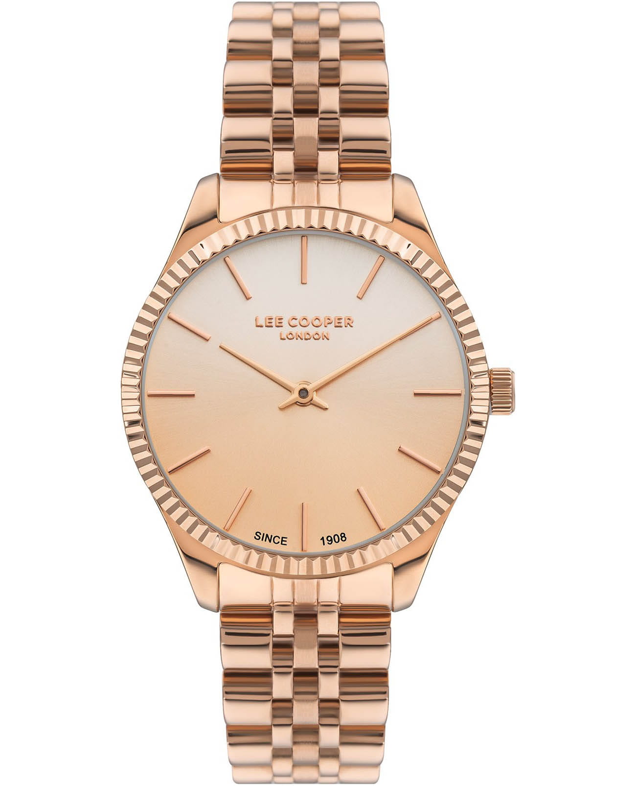 Женские наручные часы Lee Cooper LC07682.430 — это элегантная модель с утончённым дизайном. Корпус диаметром 35 мм выполнен из суперметалла с IP-покрытиемIP-покрытиеМетод ионного напыления. Демонстрирует повышенную устойчивость к истиранию, окислению и химическим веществам. Под воздействием высокого давления и температуры около 1500°C молекулы металла надёжно соединяются с частицами корпуса часов., придающий часам изысканный вид. Циферблат  оформлен с применением лаконичных индексов, а показания времени ограничиваются часовой и минутной стрелками — это делает дизайн строгим и функциональным. Благодаря отсутствию лишних деталей модель подходит как аксессуар на каждый день. Циферблат защищён минеральным стекломМинеральное стеклоМинеральное стекло представляет собой искусственно выращенный минерал кварца. Такое стекло отличается особой устойчивостью к повреждениям и царапинам. Уступает по некоторым качествам сапфировому стеклу., устойчивым к царапинам. Часы работают на кварцевом механизме, обеспечивая точность хода. Браслет из нержавеющей стали с IP-покрытиемIP-покрытиеМетод ионного напыления. Демонстрирует повышенную устойчивость к истиранию, окислению и химическим веществам. Под воздействием высокого давления и температуры около 1500°C молекулы металла надёжно соединяются с частицами корпуса часов. с раскладной застёжкойРаскладная застёжкаТакой тип застёжки используется только на браслетах из металла. Она никогда не раскрывается полностью, происходит разделение на 2 и более частей. Раскладывающая застёжка снизит вероятность потери часов к минимуму. гарантирует комфортное ношение и надёжную фиксацию на запястье. Водозащита 30 метров защищает часы от случайных брызг и дождя, делая их подходящими для повседневного использования. Водозащита WR30 защищает часы от случайных брызг и дождя, делая их подходящими для повседневного использования. Это идеальный выбор для тех, кто ценит классический стиль, точность механизма и качество материалов в одном аксессуаре.