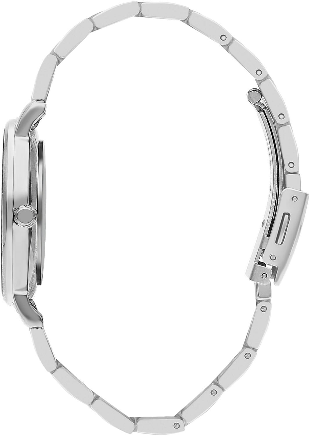 Женские часы Lee Cooper LC07684.270 выполнены в классическом стиле и отличаются лаконичным дизайном и надёжностью. Модель оснащена кварцевым механизмом, обеспечивающим точность хода и минимальное обслуживание. Корпус круглой формы имеет размер 34 мм, изготовлен из суперметалла, а также дополнен минеральным стеклом. Минеральное стеклоМинеральное стеклоМинеральное стекло представляет собой искусственно выращенный минерал кварца. Такое стекло отличается особой устойчивостью к повреждениям и царапинам. Уступает по некоторым качествам сапфировому стеклу., устойчивое к мелким повреждениям. Часы имеют браслет из нержавеющей стали с раскладной застёжкойРаскладная застёжкаТакой тип застёжки используется только на браслетах из металла. Она никогда не раскрывается полностью, происходит разделение на 2 и более частей. Раскладывающая застёжка снизит вероятность потери часов к минимуму. с частичным IP-покрытиемIP-покрытиеМетод ионного напыления. Демонстрирует повышенную устойчивость к истиранию, окислению и химическим веществам. Под воздействием высокого давления и температуры около 1500°C молекулы металла надёжно соединяются с частицами корпуса часов., устойчивым к возникновению аллергических реакций, благодаря использованию качественных материалов.  Циферблат оформлен с применением лаконичных индексов, а показания времени ограничиваются часовой и минутной стрелками — это делает дизайн строгим и функциональным. Благодаря отсутствию лишних деталей модель подходит как аксессуар на каждый день. Часы имеют базовый уровень водозащиты 3 АТМ , что позволяет использовать их в повседневных условиях без риска повреждения от случайных брызг воды или дождя. Это идеальный выбор для тех, кто ценит классический стиль, точность механизма и качество материалов в одном аксессуаре.