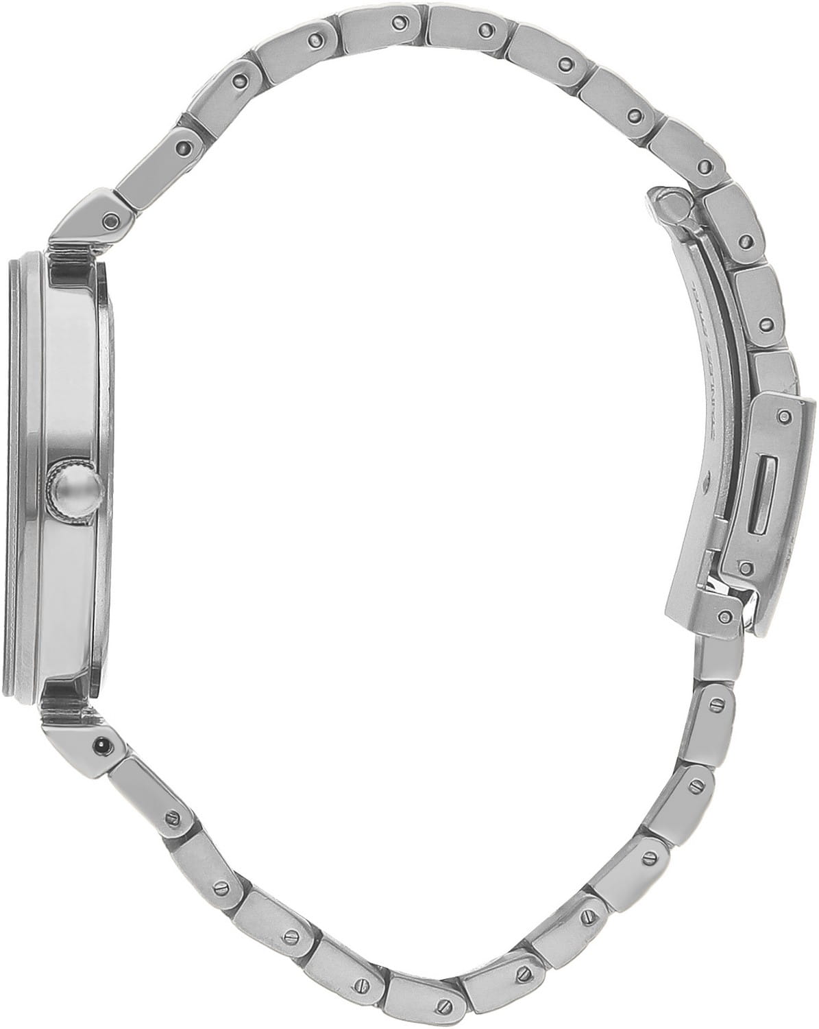 Женские часы Lee Cooper LC07711.390 — это стильное сочетание элегантности и современного дизайна. Круглый корпус диаметром 35 мм выполнен из суперметалла серебристого цвета, придающий модели особый блеск. Изысканный циферблат синего цвета защищен минеральным стекломМинеральное стеклоМинеральное стекло представляет собой искусственно выращенный минерал кварца. Такое стекло отличается особой устойчивостью к повреждениям и царапинам. Уступает по некоторым качествам сапфировому стеклу., обеспечивающим устойчивость к царапинам. Метки в виде штрихов. Часы оснащены надежным кварцевым механизмом, а стильный стальной браслет на раскладной застёжкеРаскладная застёжкаТакой тип застёжки используется только на браслетах из металла. Она никогда не раскрывается полностью, происходит разделение на 2 и более частей. Раскладывающая застёжка снизит вероятность потери часов к минимуму. гарантирует комфортную посадку на запястье. Водозащита 30 метров защищает модель от случайных брызг и дождя. Lee Cooper — отличный выбор для тех, кто ценит утонченность и качество.