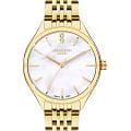 Женские часы Lee Cooper LC07821.120 выполнены в классическом стиле и сочетают строгий дизайн с надёжным механизмом. Модель оснащена кварцевым механизмом, обеспечивающим точность хода и минимальное обслуживание. Корпус круглой формы имеет размер 36 мм, изготовлен из суперметалла с IP-покрытиемIP-покрытиеМетод ионного напыления. Демонстрирует повышенную устойчивость к истиранию, окислению и химическим веществам. Под воздействием высокого давления и температуры около 1500°C молекулы металла надёжно соединяются с частицами корпуса часов., гарантирует комфорт при ношении. Перламутровый циферблат дополнен штрихами для чёткого отсчёта времени. Защиту циферблата обеспечивает минеральное стеклоМинеральное стеклоМинеральное стекло представляет собой искусственно выращенный минерал кварца. Такое стекло отличается особой устойчивостью к повреждениям и царапинам. Уступает по некоторым качествам сапфировому стеклу., устойчивое к мелким механическим повреждениям. Стальной браслет с IP-покрытиемIP-покрытиеМетод ионного напыления. Демонстрирует повышенную устойчивость к истиранию, окислению и химическим веществам. Под воздействием высокого давления и температуры около 1500°C молекулы металла надёжно соединяются с частицами корпуса часов. на раскладной застёжкеРаскладная застёжкаТакой тип застёжки используется только на браслетах из металла. Она никогда не раскрывается полностью, происходит разделение на 2 и более частей. Раскладывающая застёжка снизит вероятность потери часов к минимуму. гарантирует удобную посадку и надёжную фиксацию на запястье. Водозащита 30WR позволяет использовать часы в повседневных условиях без риска повреждения от случайных брызг воды. Это сочетание классического дизайна, прочности материалов и качества исполнения для уверенных в себе женщин.
