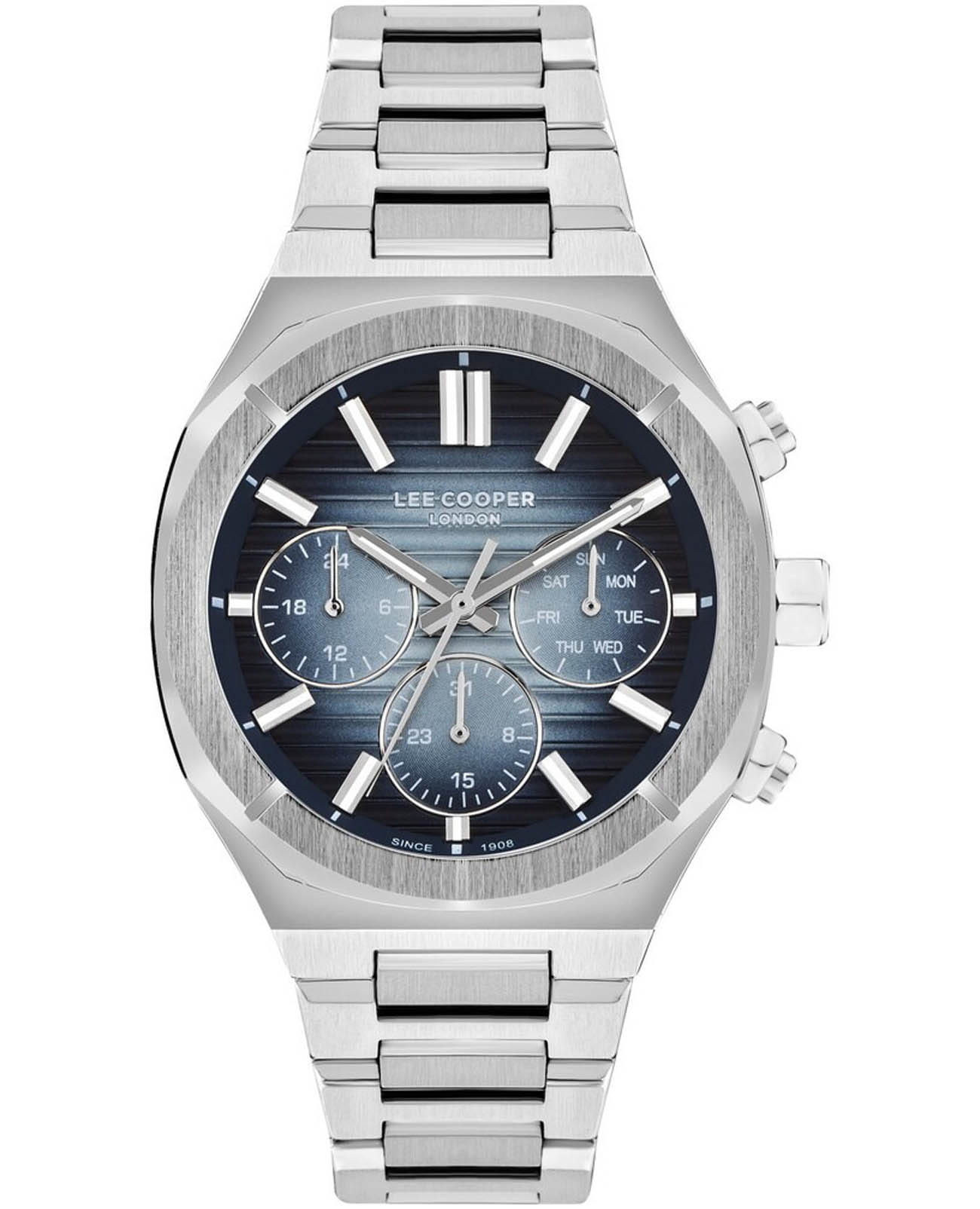 Мужские часы Lee Cooper LC07959.390 с корпусом 43 мм, выполненным из суперметалла, сочетают современный стиль и надежность. Синий циферблат дополняет элегантный дизайн, а минеральное стеклоМинеральное стеклоМинеральное стекло представляет собой искусственно выращенный минерал кварца. Такое стекло отличается особой устойчивостью к повреждениям и царапинам. Уступает по некоторым качествам сапфировому стеклу. защищает его от царапин и повреждений. Точный кварцевый механизм обеспечивает стабильную работу. Функциональность модели расширена за счёт индикации даты, дня недели и 24-часового формата времени. Водозащита 50 м защищает от случайных брызг. Стальной браслет с раскладной застёжкойРаскладная застёжкаТакой тип застёжки используется только на браслетах из металла. Она никогда не раскрывается полностью, происходит разделение на 2 и более частей. Раскладывающая застёжка снизит вероятность потери часов к минимуму., что гарантирует удобную посадку и надёжную фиксацию.