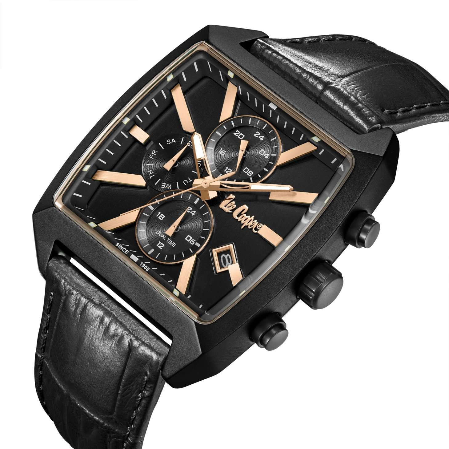Мужские наручные часы Lee Cooper LC08180.651 оснащены кварцевым механизмом, обеспечивающий высокую точность хода и надежность. Элегантный корпус часов выполнен из суперметалла с IP-покрытиемIP-покрытиеМетод ионного напыления. Демонстрирует повышенную устойчивость к истиранию, окислению и химическим веществам. Под воздействием высокого давления и температуры около 1500°C молекулы металла надёжно соединяются с частицами корпуса часов. черного цвета, что делает их устойчивыми к внешним воздействиям и придает благородный вид. Циферблат украшен классическими стрелками с люминесцентным покрытиемЛюминесцентное покрытиеПозволяет считывать показания времени в темноте. Производители наносят на стрелки, часовые индексы, безель или поверхность циферблата светонакопительный состав, дающий холодное свечение., гармонично дополняющим общий дизайн модели. Для защиты циферблата используется минеральное стеклоМинеральное стеклоМинеральное стекло представляет собой искусственно выращенный минерал кварца. Такое стекло отличается особой устойчивостью к повреждениям и царапинам. Уступает по некоторым качествам сапфировому стеклу., устойчивое к царапинам и механическим повреждениям. Корпус размером 40 мм x 48 мм, что делает часы заметными и подходящими. Кожаный ремешок на стандартной застёжке обеспечивает комфортное и безопасное ношение. Окошко даты находится в положении 4 часа. Часы обладают водонепроницаемостью до 50 метров (5 АТМ), что позволяет использовать их в повседневной жизни, включая контакт с водой при мытье рук или дожде. Эти часы станут идеальным выбором для мужчин, ценящих стиль, качество и функциональность.
