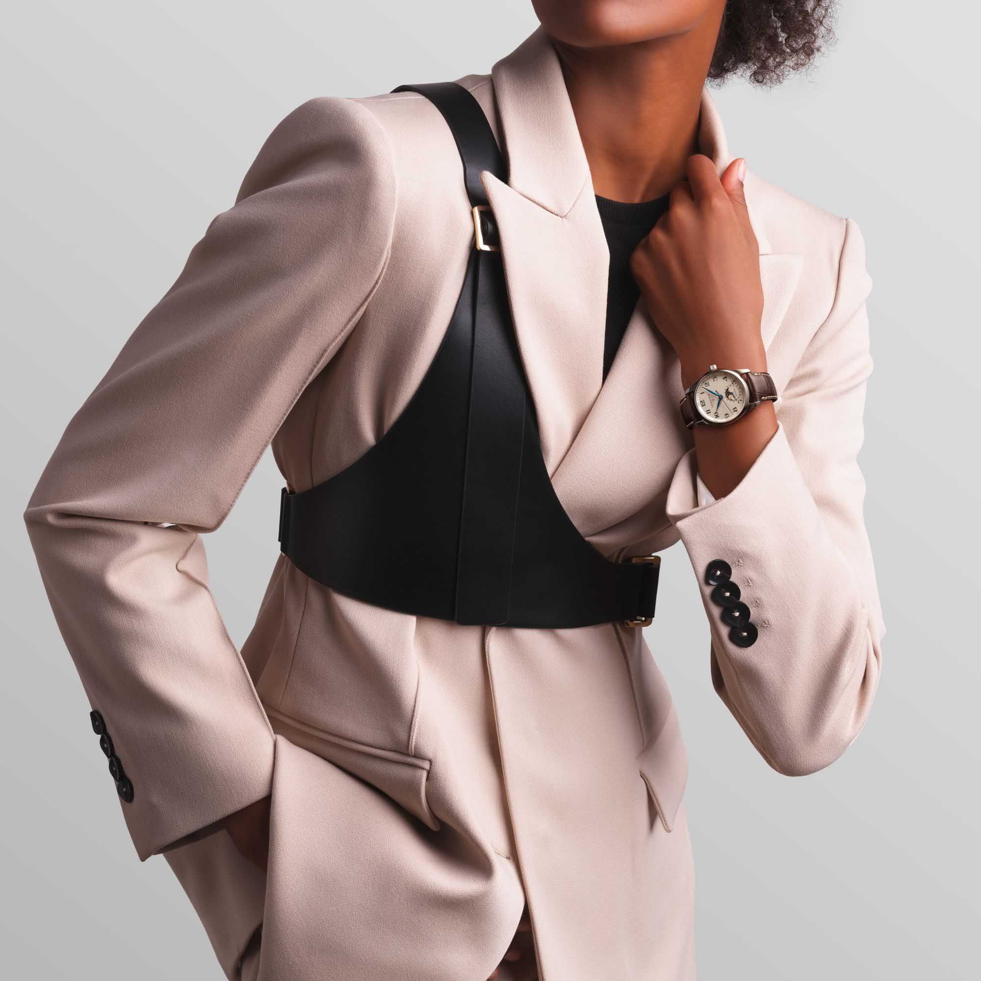 Женские швейцарские механические часы с автоподзаводом Longines Master Collection L2.409.4.78.3. Сапфировое стеклоСапфировое стеклоПрочный и надёжный материал из кристалла сапфира синтетического происхождения, характеризующийся особой твёрдостью и устойчивостью к царапинам и повреждениям. устойчивое к появлению царапин, обладающее высокой прозрачностью. Корпус часов изготовлен из нержавеющей стали. Автоматический механизм с частотой баланса 25 200 полуколебаний в час и запасом хода, которого хватает примерно на 72 часа работы. Часы, минуты, секунды, маленький стрелочный указатель фаз Луны и даты в положении 6 часов. Прозрачная задняя крышка. Класс водозащиты: 30 метров, позволит защитить корпус от случайных брызг или капель дождя. Ремешок из кожи аллигатора на застёжке «бабочка» с кнопкамиЗастёжка "бабочка"Такой вид застёжки дополняется предохранителями, помогающими избежать случайного раскрытия браслета. Обладают изящным исполнением. .