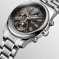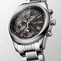 Мужсике швейцарские механические часы-хронографХронографФункция позволяет измерять отрезки времени с особой точностью: часы, минуты, секунды. Верным признаком хронографа является наличие на циферблате 3 дополнительных окошек-счётчиков. с автоподзаводом Longines Master Collection L2.773.4.61.6. Сапфировое стеклоСапфировое стеклоПрочный и надёжный материал из кристалла сапфира синтетического происхождения, характеризующийся особой твёрдостью и устойчивостью к царапинам и повреждениям. устойчивое к появлению царапин, обладающее высокой прозрачностью. Корпус часов изготовлен из нержавеющей стали. Функции: часы, минуты, малая секундная стрелка с 24-часовым индикатором в положении 9 часов. Дату показывает центральная стрелка с серповидным наконечником. Указатель фаз Луны в положении 6 часов. Прозрачная задняя крышка. Класс водозащиты: 30 метров, позволит защитить корпус от случайных брызг или капель дождя. Стальной браслет на застёжке «бабочка» с кнопкамиЗастёжка "бабочка"Такой вид застёжки дополняется предохранителями, помогающими избежать случайного раскрытия браслета. Обладают изящным исполнением. .