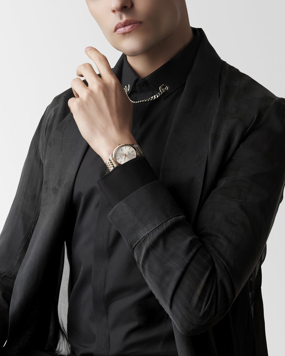 Модель выполнена из сочетания стали 316L и 18-ти каратного розового золота18-каратное золотоОбозначение по каратной системе пробирования, оно показывает, сколько драгоценного металла содержится в изделии. 18 карат - в составе 75% чистого золота, соответствует 750 пробе.