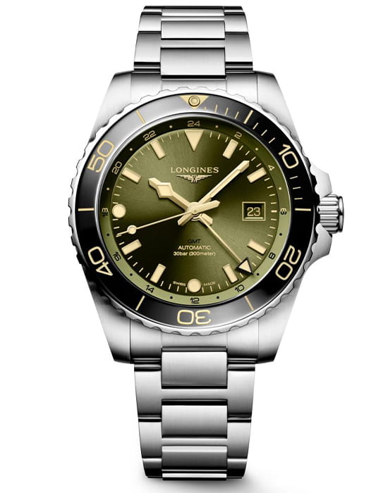 Женские механические швейцарские часы с автоподзаводом Longines Hydroconquest GMT L3.890.4.06.6 Сапфировое стеклоСапфировое стеклоПрочный и надёжный материал из кристалла сапфира синтетического происхождения, характеризующийся особой твёрдостью и устойчивостью к царапинам и повреждениям. с антибликовым покрытием, устойчивое к мелким механическим повреждениям. Корпус часов изготовлен из нержавеющей стали. Вращающийся стальной безельБезельВнешний ободок, закрепляющий стекло. В спортивных часах так называется поворотное кольцо с делениями на циферблате, выполняет роль таймера – замеряет отрезки времени на шкале. Неподвижный безель – элемент декора. Однонаправленно вращающийся безель на дайверских часах позволяет фиксировать моменты погружения и выныривания на поверхность. с люминесцентным покрытиемЛюминесцентное покрытиеПозволяет считывать показания времени в темноте. Производители наносят на стрелки, часовые индексы, безель или поверхность циферблата светонакопительный состав, дающий холодное свечение. Superluminova из нержавеющей стали и керамики, защищенный от царапин, никогда не изнашивается и не выцветает. Стрелки и метки с люминесцентным покрытиемЛюминесцентное покрытиеПозволяет считывать показания времени в темноте. Производители наносят на стрелки, часовые индексы, безель или поверхность циферблата светонакопительный состав, дающий холодное свечение.. Окошко даты находится в положении 3 часа. Класс водозащиты: 300 метров, позволит плавать, нырять и заниматься другими водными видами спорта. Стальной браслет на раскладной застёжкеРаскладная застёжкаТакой тип застёжки используется только на браслетах из металла. Она никогда не раскрывается полностью, происходит разделение на 2 и более частей. Раскладывающая застёжка снизит вероятность потери часов к минимуму..