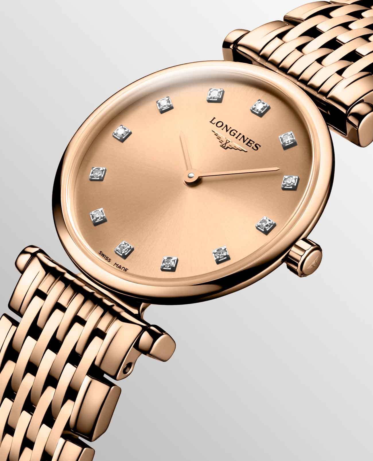 Женские швейцарские часы Longines La Grande Classique L4.209.1.90.8, кварцевый механизм с высокой точностью. Сапфировое стеклоСапфировое стеклоПрочный и надёжный материал из кристалла сапфира синтетического происхождения, характеризующийся особой твёрдостью и устойчивостью к царапинам и повреждениям. устойчивое к появлению царапин, обладающее высокой прозрачностью. Корпус часов изготовлен из стали с PVD-покрытиемPVDУльтратонкое покрытие наносится в технике вакуумного напыления, сочетает в себе нитрид титана особой прочности со слоем золота или оксида хрома. Несёт в себе декоративную или защитную функцию.. Циферблат дополнен 12 бриллиантами группы Top Wesselton VS-SI общим весом 0.081 карата. Класс водозащиты: 30 метров, позволит защитить корпус от случайных брызг или капель дождя. Браслет из стали с PVD-покрытиемPVDУльтратонкое покрытие наносится в технике вакуумного напыления, сочетает в себе нитрид титана особой прочности со слоем золота или оксида хрома. Несёт в себе декоративную или защитную функцию. на застёжке «бабочка» с кнопкамиЗастёжка "бабочка"Такой вид застёжки дополняется предохранителями, помогающими избежать случайного раскрытия браслета. Обладают изящным исполнением. .