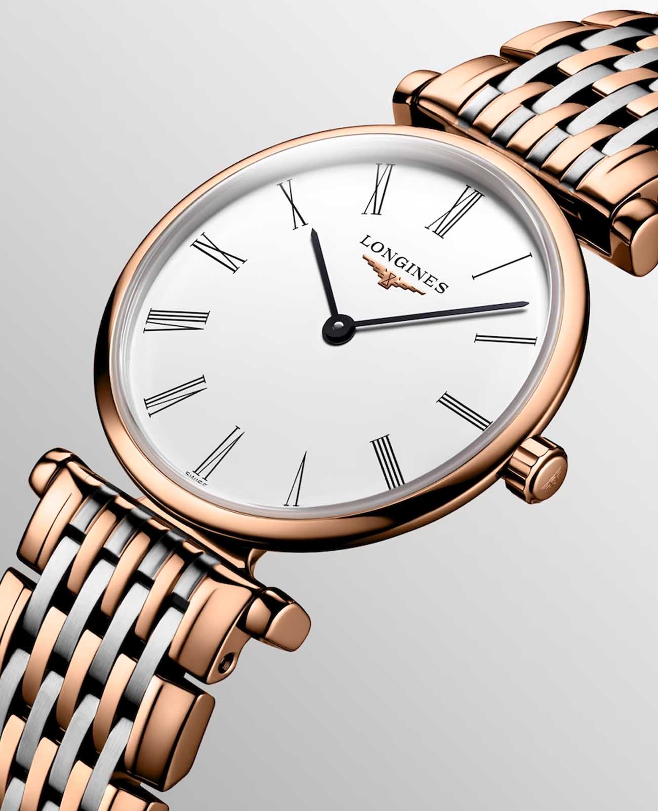 Женские швейцарские часы Longines La Grande Classique L4.209.1.91.7, кварцевый механизм с высокой точностью. Сапфировое стеклоСапфировое стеклоПрочный и надёжный материал из кристалла сапфира синтетического происхождения, характеризующийся особой твёрдостью и устойчивостью к царапинам и повреждениям. устойчивое к появлению царапин, обладающее высокой прозрачностью. Корпус часов изготовлен из стали с PVD-покрытиемPVDУльтратонкое покрытие наносится в технике вакуумного напыления, сочетает в себе нитрид титана особой прочности со слоем золота или оксида хрома. Несёт в себе декоративную или защитную функцию.. Циферблат украшают нарисованные римские цифры. Класс водозащиты: 30 метров, позволит защитить корпус от случайных брызг или капель дождя. Стальной браслет с частичным PVD-покрытиемPVDУльтратонкое покрытие наносится в технике вакуумного напыления, сочетает в себе нитрид титана особой прочности со слоем золота или оксида хрома. Несёт в себе декоративную или защитную функцию. на застёжке-бабочке с кнопкамиЗастёжка "бабочка"Такой вид застёжки дополняется предохранителями, помогающими избежать случайного раскрытия браслета. Обладают изящным исполнением. .