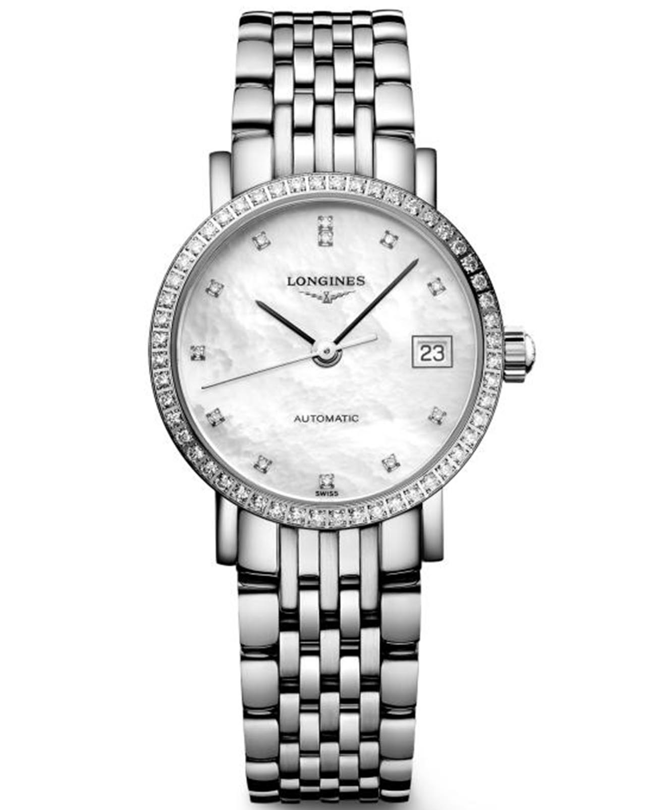 Швейцарские механические часы с автоподзаводом Longines Elegant L4.309.0.87.6. Сапфировое стеклоСапфировое стеклоПрочный и надёжный материал из кристалла сапфира синтетического происхождения, характеризующийся особой твёрдостью и устойчивостью к царапинам и повреждениям. с многослойным антибликовым покрытием с обеих сторон, устойчивое к появлению царапин, обладающее высокой прозрачностью. Корпус часов изготовлен из стали. Циферблат c 12 бриллиантами и корпус с 52 бриллиантами группы Top Wesselton VS-SI. Окошко даты находится в положении 3 часа. Класс водозащиты: 30 метров, позволит защитить корпус от случайных брызг или капель дождя. Стальной браслет на тройной раскладной застежке с системой блокировки и кнопкой.