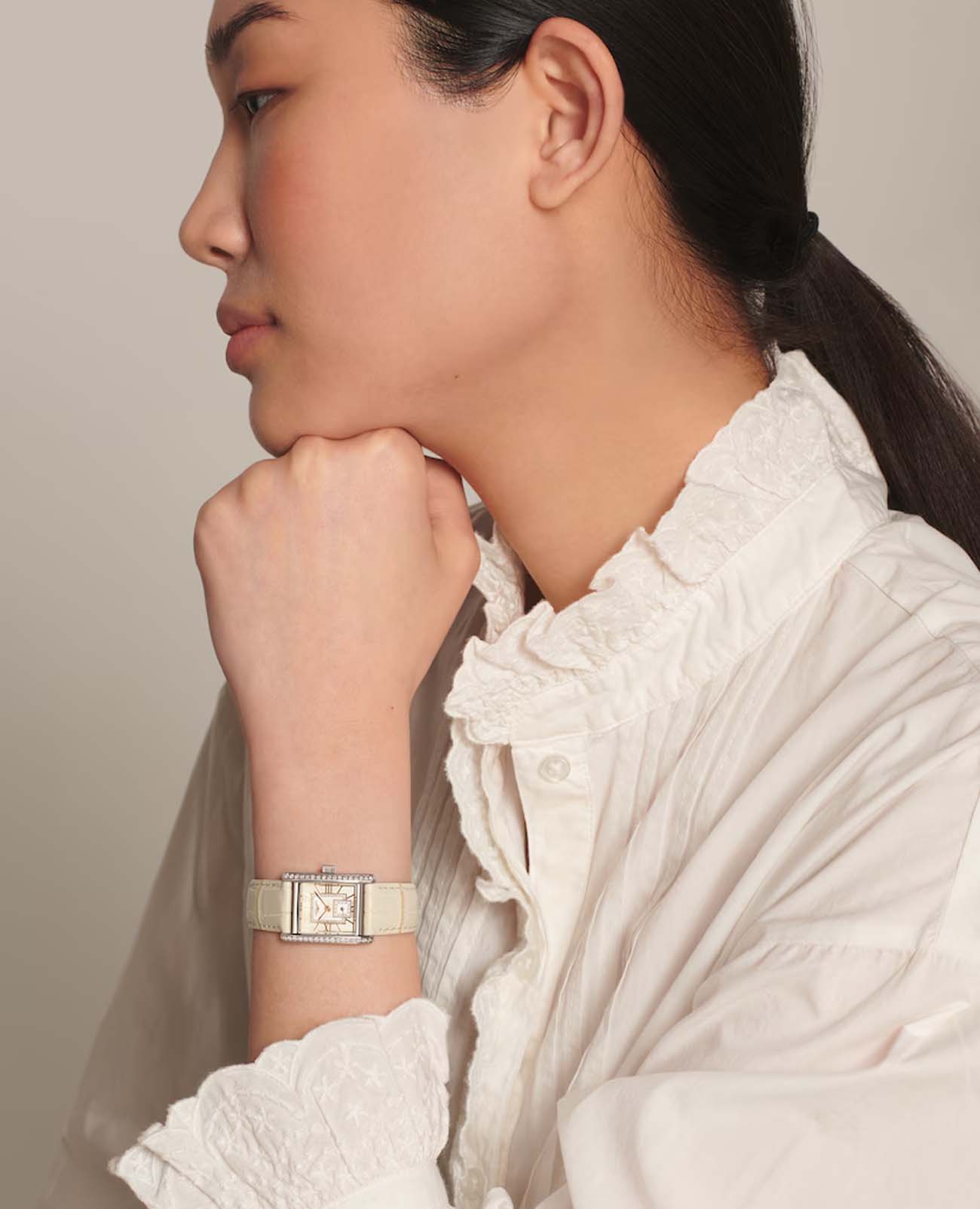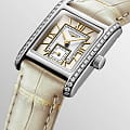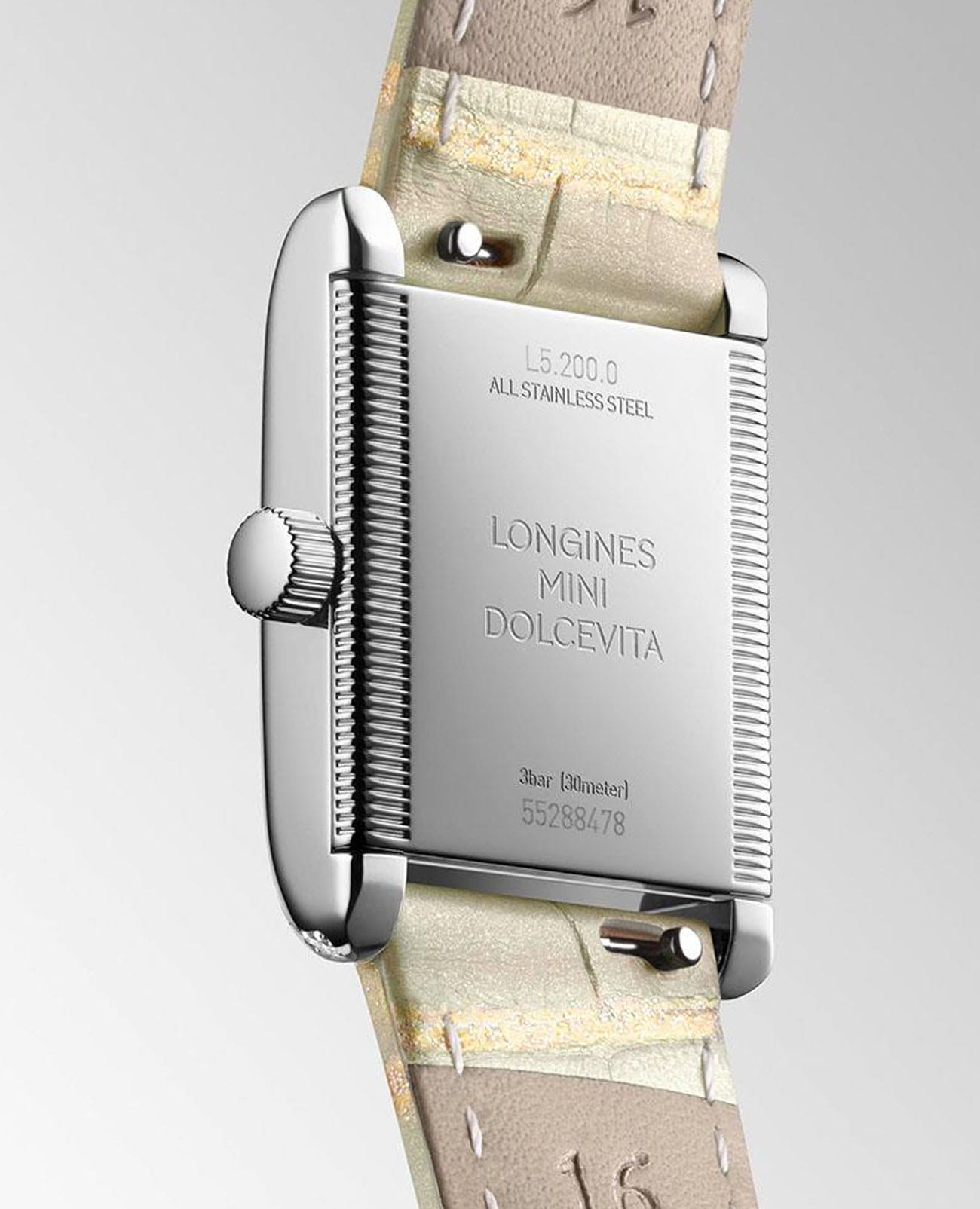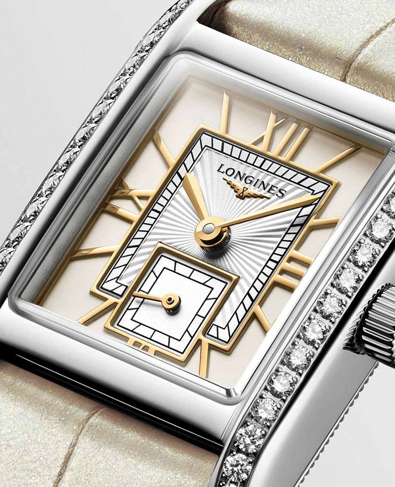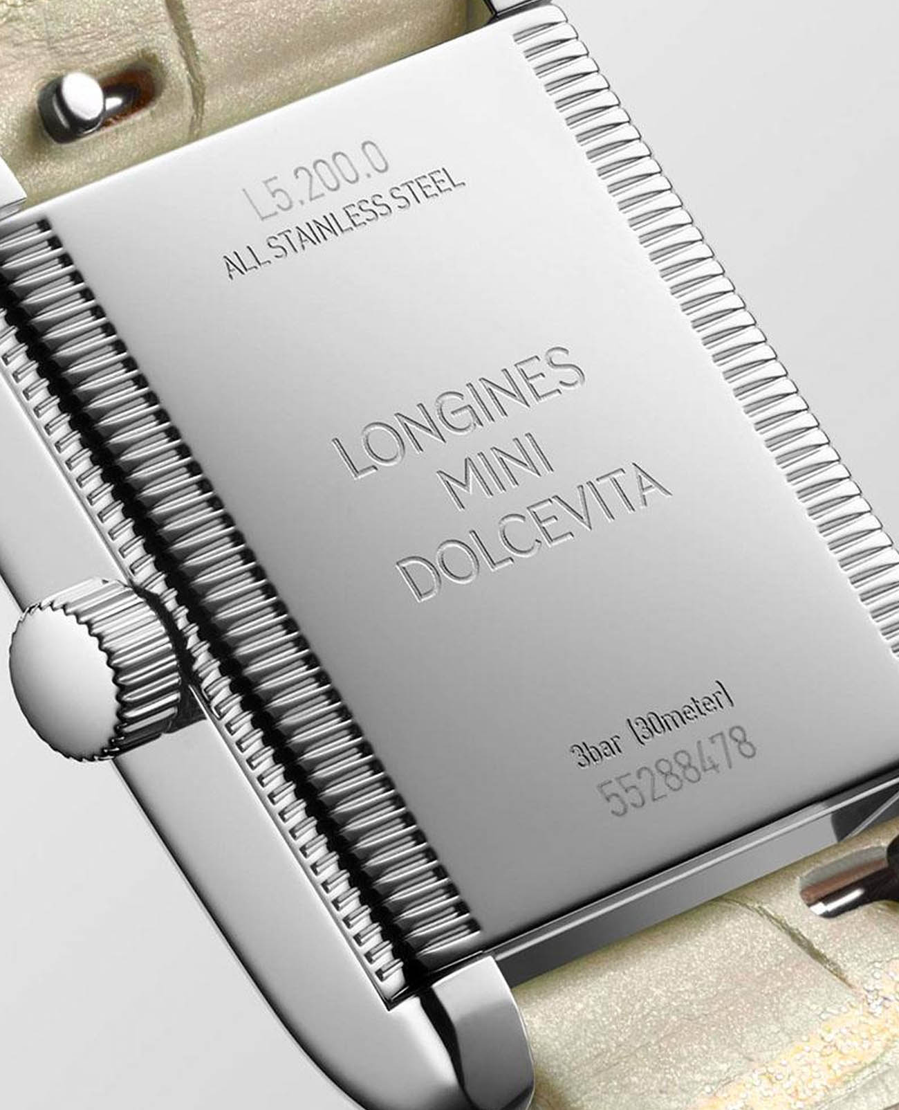 Женские швейцарские часы Longines DolceVita L5.200.0.79.2, кварцевый механизм с высокой точностью. Сапфировое стеклоСапфировое стеклоПрочный и надёжный материал из кристалла сапфира синтетического происхождения, характеризующийся особой твёрдостью и устойчивостью к царапинам и повреждениям. устойчивое к появлению царапин, обладающее высокой прозрачностью. Корпус инкрустирован 38 бриллиантами IF-VVS Top Wesselton. Двухцветный циферблат украшен римскими цифрами. Малая секундная стрелка в положении 6 часов. Класс водозащиты: 30 метров, позволит защитить корпус от случайных брызг или капель дождя. Ремешок из кожи аллигатора на стандартной застежке.