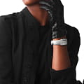 Материалы и Дизайн: Корпус из нержавеющей стали, инкрустированный 46 бриллиантами весом 0,386 карата, придаёт часам изысканность и блеск. Римские цифры на циферблате добавляют нотку ретро-шика, а сапфировое стеклоСапфировое стеклоПрочный и надёжный материал из кристалла сапфира синтетического происхождения, характеризующийся особой твёрдостью и устойчивостью к царапинам и повреждениям., устойчивое к царапинам и обладающее высокой прозрачностью, сохраняет первозданную красоту циферблата на долгие годы.