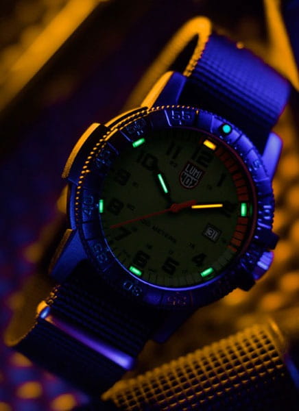 Часы Luminox XS.0337 — это надежный швейцарский аксессуар, сочетающий в себе легкость и функциональность. Благодаря корпусу из пластика, усиленного прессованным карбономКарбонОт «carbon», «carbone» - углерод, углепластик - полимерный композиционный материал из переплетённых под определенным углом между собой нитей углеродного волокна, применяется для изготовления лёгких, но прочных деталей. В часах часто используют для украшения циферблатов и ремешков. Так же карбон используется в изготовлении корпусов. Такие корпуса обладают антикоррозионным свойством, не поддаются электромагнитному излучению, обладают повышенной прочностью и противоударностью., они отличаются прочностью и малым весом. Зеленый циферблат оснащен уникальной подсветкой, которая позволяет узнать время даже в полной темноте. Технология LLTLLTLLT — это автономный механизм подсветки, основанный на использовании микроскопических газонаполненных элементов. Специальные герметичные капсулы из боросиликатного стекла, интегрированные в циферблат, генерируют свечение без необходимости подключения к внешним источникам энергии. Для их работы не требуется ни дополнительный свет, ни механическое воздействие (например, нажатие кнопки). Свечение возникает благодаря химическому процессу: реакция между тритием, заключенным в капсулах, и люминофорным покрытием создает стабильное автономное освещение. Технология обеспечивает энергетическую независимость и долговечность подсветки.-подсветки обеспечивает превосходную видимость ночью на протяжении 25 лет, а дополнительное люминесцентное покрытиеЛюминесцентное покрытиеПозволяет считывать показания времени в темноте. Производители наносят на стрелки, часовые индексы, безель или поверхность циферблата светонакопительный состав, дающий холодное свечение. Superluminova усиливает эффект. Часы поддерживают как 12-часовой, так и 24-часовой формат времени, что делает их удобными для людей с разным режимом дня. БезельБезельВнешний ободок, закрепляющий стекло. В спортивных часах так называется поворотное кольцо с делениями на циферблате, выполняет роль таймера – замеряет отрезки времени на шкале. Неподвижный безель – элемент декора. Однонаправленно вращающийся безель на дайверских часах позволяет фиксировать моменты погружения и выныривания на поверхность., вращающийся в одном направлении, оснащен светящейся меткой на 12 часов, что добавляет удобства в использовании. Минеральное стеклоМинеральное стеклоМинеральное стекло представляет собой искусственно выращенный минерал кварца. Такое стекло отличается особой устойчивостью к повреждениям и царапинам. Уступает по некоторым качествам сапфировому стеклу. повышенной прочности защищает циферблат от повреждений, а водозащита класса 100WR позволяет не беспокоиться о воздействии влаги. Календарь с индикацией числа добавляет практичности, а каучуковый браслет обеспечивает комфорт и долговечность при носке. Заводная головка с защитой и двойной уплотнительной прокладкой гарантирует герметичность, а завинчивающаяся задняя крышка добавляет надежности конструкции. Нейлоновый черный ремешок с классической застежкой обеспечивает комфортное ношение и надежность фиксации на запястье. С размерами корпуса D 44мм, толщиной 12мм и весом всего 50г, эти часы представляют собой идеальное сочет