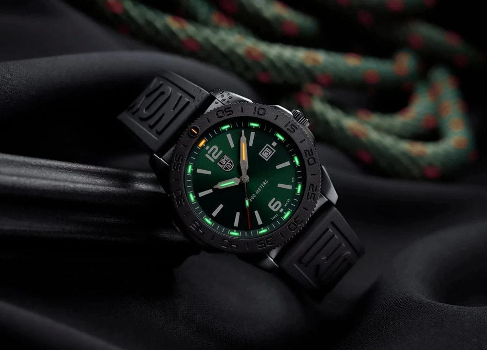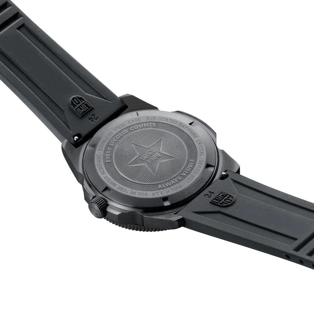 Luminox XS.3137.B — мужская модель серии Pacific Diver, сочетающая надёжность дайверских часов и современный стиль. Корпус диаметром 44 мм выполнен из нержавеющей стали с чёрным PVDPVDУльтратонкое покрытие наносится в технике вакуумного напыления, сочетает в себе нитрид титана особой прочности со слоем золота или оксида хрома. Несёт в себе декоративную или защитную функцию.-покрытием, а односторонний вращающийся безельБезельВнешний ободок, закрепляющий стекло. В спортивных часах так называется поворотное кольцо с делениями на циферблате, выполняет роль таймера – замеряет отрезки времени на шкале. Неподвижный безель – элемент декора. Однонаправленно вращающийся безель на дайверских часах позволяет фиксировать моменты погружения и выныривания на поверхность. из углеродного композита отличается прочностью и лёгкостью. Защитную функцию выполняет сапфировое стеклоСапфировое стеклоПрочный и надёжный материал из кристалла сапфира синтетического происхождения, характеризующийся особой твёрдостью и устойчивостью к царапинам и повреждениям. с антибликовым покрытиемАнтибликовое покрытиеСлой оксида металла в 0,13-0,3 микрон, благодаря которому стекло часов не бликует и не отражает свет. Антибликовое покрытие уменьшает отражение света в 10 раз, обеспечивая отличную читаемость показателей циферблата., обеспечивающим чёткую читаемость в любых условиях. Механизм — швейцарский кварцевый, с индикацией часов, минут, секунд и даты. Водозащита 200 м (20 бар) соответствует профессиональным стандартам для дайвинга. Метки и стрелки покрыты люминесцентным покрытиемЛюминесцентное покрытиеПозволяет считывать показания времени в темноте. Производители наносят на стрелки, часовые индексы, безель или поверхность циферблата светонакопительный состав, дающий холодное свечение. и дополнены системой Luminox Light Technology, которая обеспечивает постоянную подсветку до 25 лет без подзарядки. Модель укомплектована каучуковым ремешком с классической застёжкой, который подчёркивает спортивный характер и удобство при активном использовании.