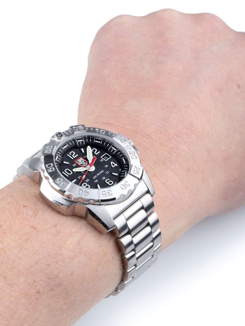 Luminox XS.3252.L — это высококачественные швейцарские часы, созданные для тех, кто ценит надежность и стиль в повседневной жизни. Эти спортивные часы оборудованы кварцевым механизмом, который обеспечивает точность и стабильность работы. Их корпус выполнен из прочной стали 316L, что придаёт часам современный и технологичный вид. Черный циферблат, на котором нанесены метки в виде штрихов и арабских цифр, защищен сапфировым стекломСапфировое стеклоПрочный и надёжный материал из кристалла сапфира синтетического происхождения, характеризующийся особой твёрдостью и устойчивостью к царапинам и повреждениям. с антибликовым покрытиемАнтибликовое покрытиеСлой оксида металла в 0,13-0,3 микрон, благодаря которому стекло часов не бликует и не отражает свет. Антибликовое покрытие уменьшает отражение света в 10 раз, обеспечивая отличную читаемость показателей циферблата., что позволяет без труда считывать время даже при ярком солнечном свете. Технология LLTLLTLLT — это автономный механизм подсветки, основанный на использовании микроскопических газонаполненных элементов. Специальные герметичные капсулы из боросиликатного стекла, интегрированные в циферблат, генерируют свечение без необходимости подключения к внешним источникам энергии. Для их работы не требуется ни дополнительный свет, ни механическое воздействие (например, нажатие кнопки). Свечение возникает благодаря химическому процессу: реакция между тритием, заключенным в капсулах, и люминофорным покрытием создает стабильное автономное освещение. Технология обеспечивает энергетическую независимость и долговечность подсветки.-подсветки обеспечивает отличную видимость в темноте, сохраняя свою эффективность на протяжении 25 лет. Окошко даты удобно расположено в позиции 3 часов. Часы оснащены вращающимся в одном направлении безелемБезельВнешний ободок, закрепляющий стекло. В спортивных часах так называется поворотное кольцо с делениями на циферблате, выполняет роль таймера – замеряет отрезки времени на шкале. Неподвижный безель – элемент декора. Однонаправленно вращающийся безель на дайверских часах позволяет фиксировать моменты погружения и выныривания на поверхность., что добавляет функциональности и удобства. Завинчивающаяся заводная головка с защитой и завинчивающаяся задняя крышка с гравировкой обеспечивают дополнительную герметичность и стильный внешний вид.Стальной браслет, изготовленный из того же материала, что и корпус, оснащён раскладной застёжкойРаскладная застёжкаТакой тип застёжки используется только на браслетах из металла. Она никогда не раскрывается полностью, происходит разделение на 2 и более частей. Раскладывающая застёжка снизит вероятность потери часов к минимуму. с системой блокировки, обеспечивая надёжную фиксацию на запястье. Эти часы обладают водозащитой до 200 метров, что делает их отличным выбором для активного отдыха и водных видов спорта.