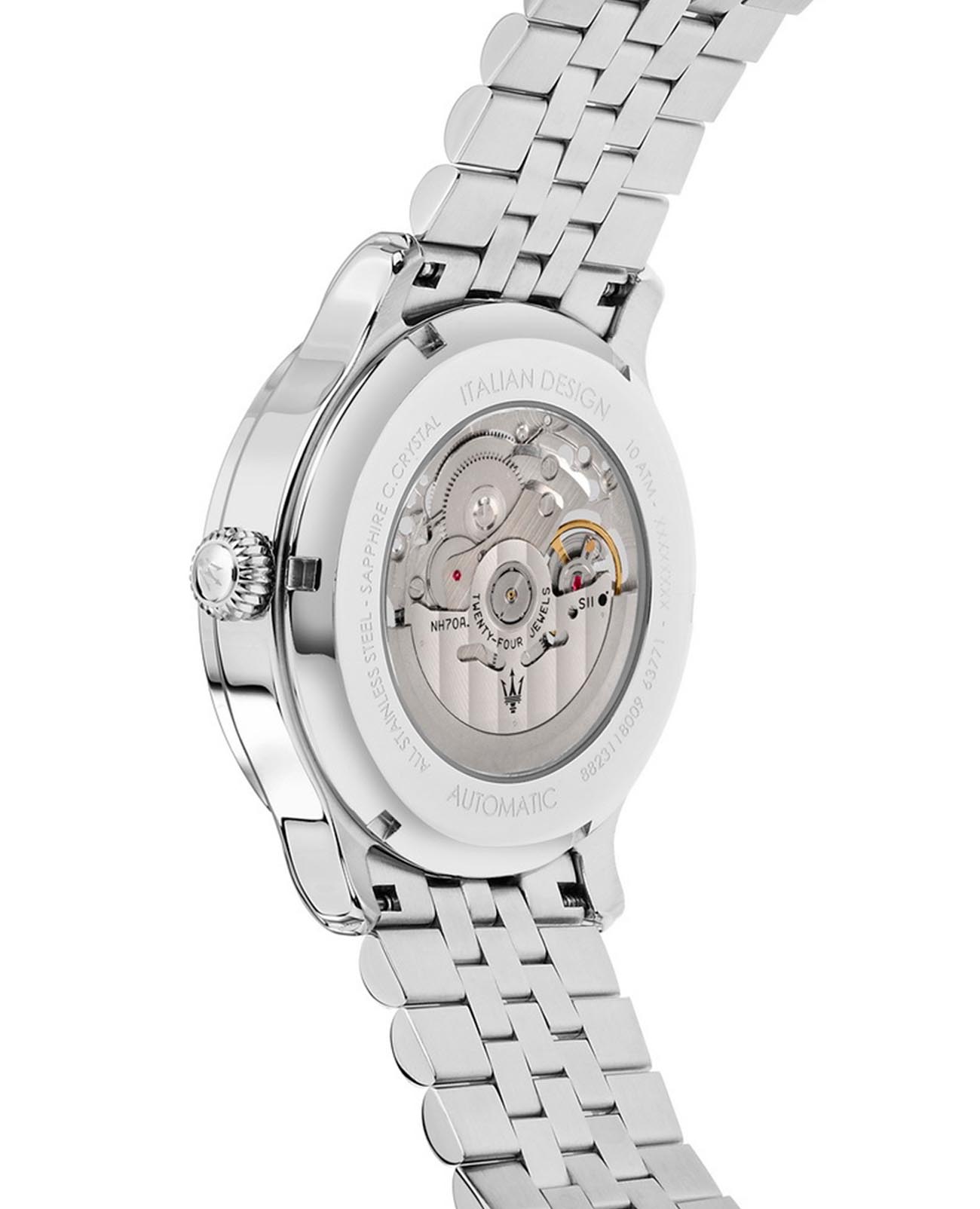 Мужские итальянские механические часы-хронографХронографФункция позволяет измерять отрезки времени с особой точностью: часы, минуты, секунды. Верным признаком хронографа является наличие на циферблате 3 дополнительных окошек-счётчиков. Maserati Epoca R8823118009. Минеральное стеклоМинеральное стеклоМинеральное стекло представляет собой искусственно выращенный минерал кварца. Такое стекло отличается особой устойчивостью к повреждениям и царапинам. Уступает по некоторым качествам сапфировому стеклу. устойчивое к появлению царапин и износу. Корпус часов изготовлен из стали. Люминесцентная подсветкаЛюминесцентное покрытиеПозволяет считывать показания времени в темноте. Производители наносят на стрелки, часовые индексы, безель или поверхность циферблата светонакопительный состав, дающий холодное свечение. стрелок. Класс водозащиты: 100 метров, позволит плавать, нырять и заниматься другими водными видами спорта. Стальной браслет на раскладной застёжкеРаскладная застёжкаТакой тип застёжки используется только на браслетах из металла. Она никогда не раскрывается полностью, происходит разделение на 2 и более частей. Раскладывающая застёжка снизит вероятность потери часов к минимуму..