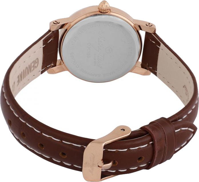 Женские кварцевые часы Mathey-Tissot City Leather D31186PBR— это стильное сочетание элегантности и современного дизайна. Изящный корпус выполнен из нержавеющей стали 316L с PVD-покрытиемPVDУльтратонкое покрытие наносится в технике вакуумного напыления, сочетает в себе нитрид титана особой прочности со слоем золота или оксида хрома. Несёт в себе декоративную или защитную функцию., что придаст образу женственности и романтизма. Изысканный циферблат с метками в виде римских цифр придает модели особый блеск. Циферблат защищен минеральным стекломМинеральное стеклоМинеральное стекло представляет собой искусственно выращенный минерал кварца. Такое стекло отличается особой устойчивостью к повреждениям и царапинам. Уступает по некоторым качествам сапфировому стеклу. с сапфировым покрытием, обеспечивающий устойчивость к царапинам. Окошко даты находится в положении 3 часа. Часы оснащены надежным кварцевым механизмом. Кожаный ремень на стандартной застежке, гарантирует комфортное и безопасное ношение. Класс водозащиты: 50 метров позволит защитить корпус от случайных брызг или капель дождя. Mathey-Tissot — отличный выбор для тех, кто ценит утонченность и качество.