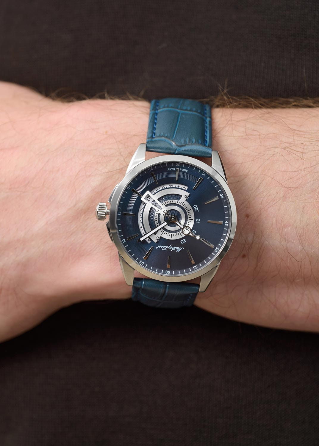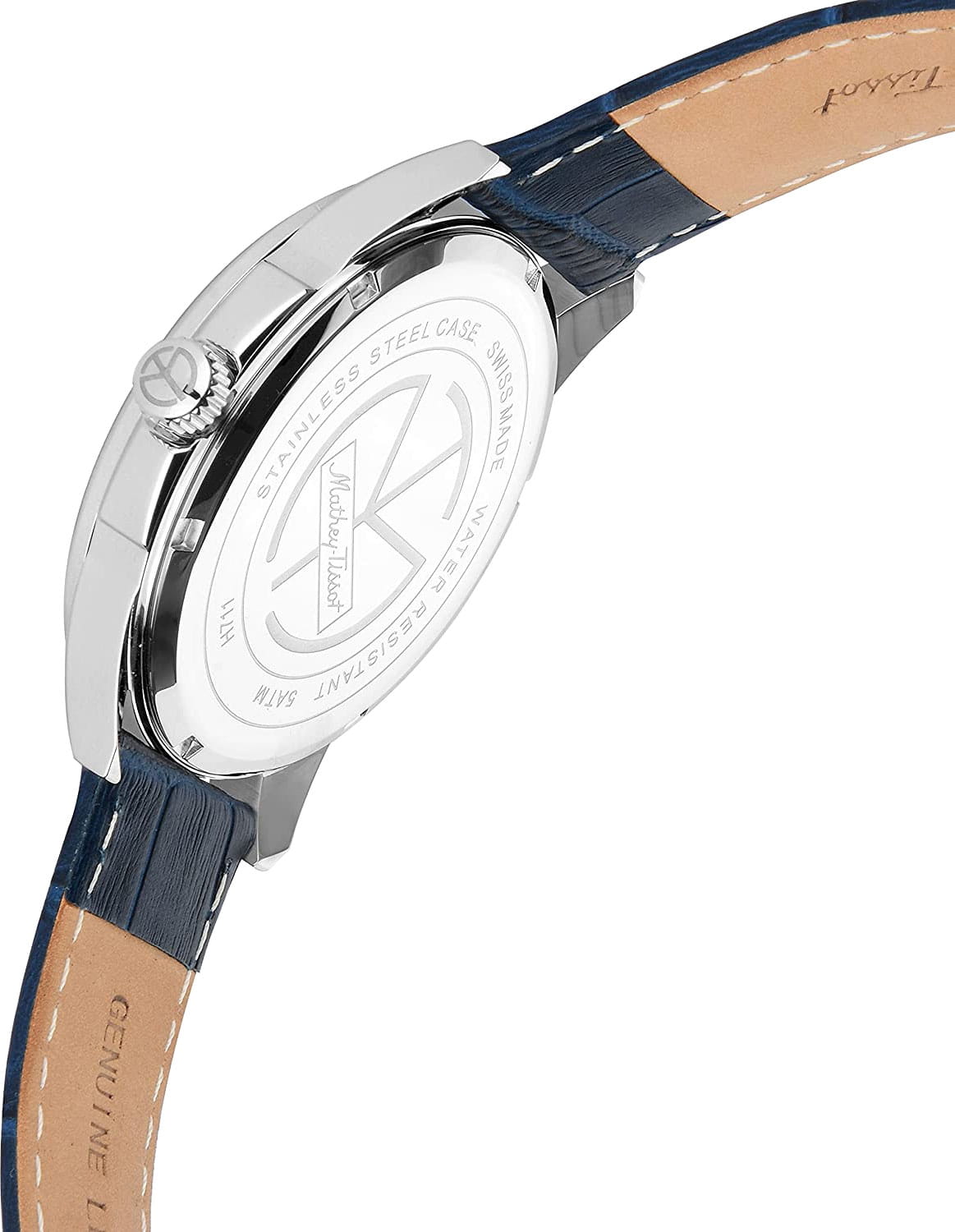 Мужские кварцевые часы Mathey-Tissot Mondo H711ABU — это стильное сочетание элегантности и современного дизайна. Изящный корпус выполнен из нержавеющей стали, диаметром 42 мм, что придаст образу элегантности и надежности. Изысканный циферблат с метками в виде штрихов придает модели особый блеск. Циферблат защищен минеральным стекломМинеральное стеклоМинеральное стекло представляет собой искусственно выращенный минерал кварца. Такое стекло отличается особой устойчивостью к повреждениям и царапинам. Уступает по некоторым качествам сапфировому стеклу., обеспечивает устойчивость к царапинам. Стрелки с люминесцентным покрытиемЛюминесцентное покрытиеПозволяет считывать показания времени в темноте. Производители наносят на стрелки, часовые индексы, безель или поверхность циферблата светонакопительный состав, дающий холодное свечение.. Окошко даты находится в положении 4 часа. Рифленая заводная головка. Часы оснащены надежным кварцевым механизмом. Кожаный ремешок на стандартной застёжке гарантирует комфортное и безопасное ношение. Класс водозащиты: 50 метров позволит защитить корпус от случайных брызг или капель дождя. Mathey-Tissot — отличный выбор для тех, кто ценит утонченность и качество.
