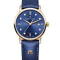 Женские наручные часы Maurice Lacroix Eliros EL1094-PVP01-450-1 из коллекции Eliros Date сочетают в себе элегантный дизайн и надежность швейцарского качества. Модель обладает круглым корпусом диаметром 30 мм, выполненным из нержавеющей стали с PVD-покрытиемPVDУльтратонкое покрытие наносится в технике вакуумного напыления, сочетает в себе нитрид титана особой прочности со слоем золота или оксида хрома. Несёт в себе декоративную или защитную функцию. розового золота, что придает часам роскошный вид. Циферблат синего цвета украшен узором Sunray и оснащен восемью бриллиантами, общим весом 0.04 карата, добавляя модели изысканности и блеска . Для защиты используется сапфировое стеклоСапфировое стеклоПрочный и надёжный материал из кристалла сапфира синтетического происхождения, характеризующийся особой твёрдостью и устойчивостью к царапинам и повреждениям., устойчивое к царапинам и обеспечивающее высокую прозрачность благодаря антибликовому покрытиюАнтибликовое покрытиеСлой оксида металла в 0,13-0,3 микрон, благодаря которому стекло часов не бликует и не отражает свет. Антибликовое покрытие уменьшает отражение света в 10 раз, обеспечивая отличную читаемость показателей циферблата.. Часы оснащены функцией вывода даты, расположенной на позиции «3 часа», что делает их практичными для повседневного использования. Механизм часов представляет собой кварцевый калибр, гарантирующий точность хода и не требующий подзаводки . Ремешок выполнен из натуральной кожи, обеспечивая комфортное ношение и элегантный внешний вид. Модель также оснащена водонепроницаемостью до 50 метров, что позволяет использовать их в повседневной жизни, включая контакт с водой, например, при мытье рук . Эти часы станут идеальным аксессуаром для женщин, ценящих классический стиль и современные технологии.