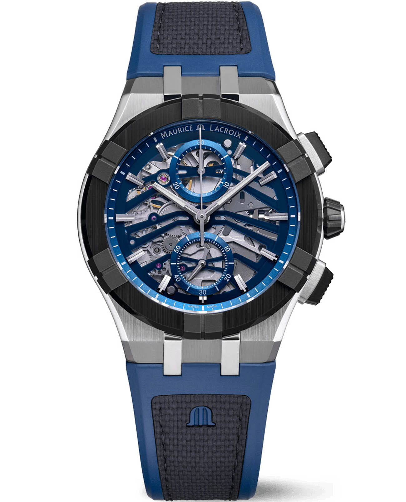 Швейцарские мужские механические часы Maurice Lacroix Aikonic Automatic Chronograph Skeleton AC8018-SSL20-030-4 с хронографом