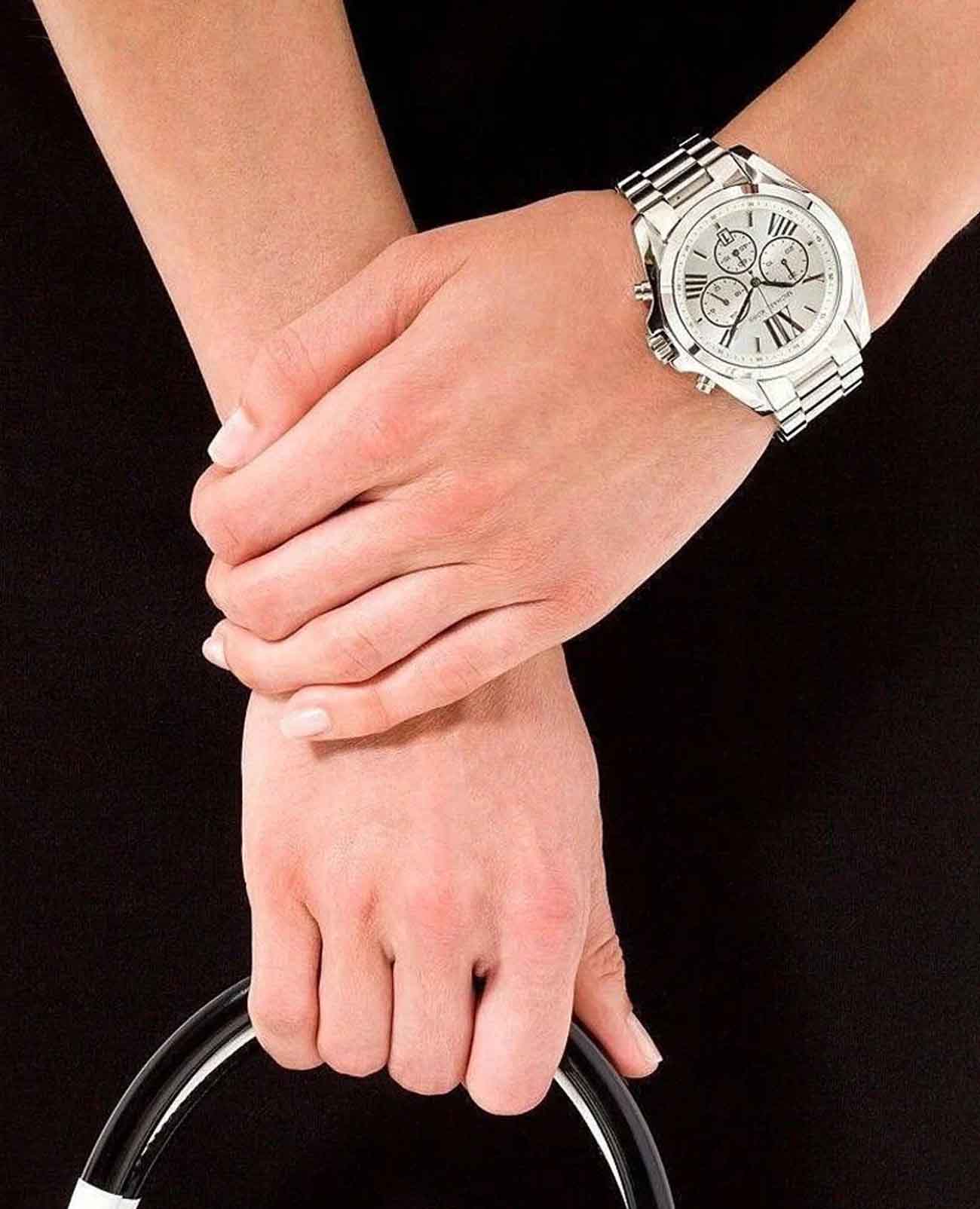 Женские американские часы-хронографХронографФункция позволяет измерять отрезки времени с особой точностью: часы, минуты, секунды. Верным признаком хронографа является наличие на циферблате 3 дополнительных окошек-счётчиков. с секундомеромСекундомерСекундоме́р — прибор, способный измерять интервалы времени с точностью до долей секунды. и с минеральным стекломМинеральное стеклоМинеральное стекло представляет собой искусственно выращенный минерал кварца. Такое стекло отличается особой устойчивостью к повреждениям и царапинам. Уступает по некоторым качествам сапфировому стеклу. Michael Kors Lexington MK5535, кварцевый механизм с высокой точностью. Корпус часов изготовлен из нержавеющей стали. Три дополнительных индикатора на циферблате. 12-ти и 24-х часовой формат. Окошко даты находится в положении 6 часов. Класс водозащиты: 100 метров, позволит плавать, нырять и заниматься другими водными видами спорта. Стальной браслет из нержавеющей стали на раскладной застёжкеРаскладная застёжкаТакой тип застёжки используется только на браслетах из металла. Она никогда не раскрывается полностью, происходит разделение на 2 и более частей. Раскладывающая застёжка снизит вероятность потери часов к минимуму..