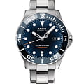 Часы MIDO Ocean Star 600 Chronometer (артикул M026.608.11.041.01) — высокотехнологичная модель, созданная для исследования океанских глубин. Корпус диаметром 43,5 мм выполнен из нержавеющей стали с керамическим безелем, заполненным люминесцентным составом Super-LumiNova® Grade XЛюминесцентное покрытиеПозволяет считывать показания времени в темноте. Производители наносят на стрелки, часовые индексы, безель или поверхность циферблата светонакопительный состав, дающий холодное свечение., и водозащитой до 60 бар (600 метров). Оснащён гелиевым клапаном. Синий циферблат с накладными часовыми метками, покрытыми Super-LumiNova®Люминесцентное покрытиеПозволяет считывать показания времени в темноте. Производители наносят на стрелки, часовые индексы, безель или поверхность циферблата светонакопительный состав, дающий холодное свечение., защищён сапфировым стекломСапфировое стеклоПрочный и надёжный материал из кристалла сапфира синтетического происхождения, характеризующийся особой твёрдостью и устойчивостью к царапинам и повреждениям. с двусторонним антибликовым покрытием.