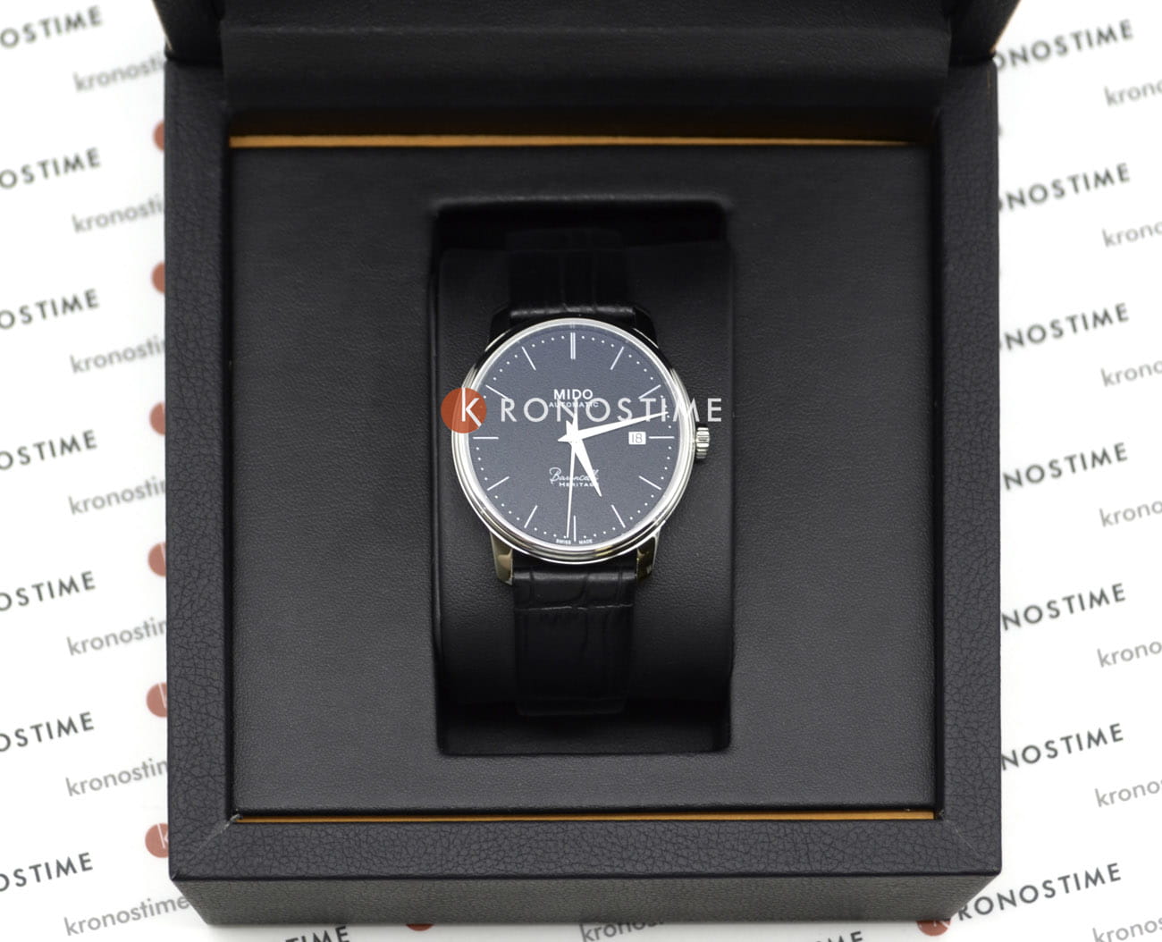 Мужские швейцарские часы Mido Baroncelli Heritage Gent M027.407.16.050.00 сочетают элегантность и высокую точность, представленные в круглом ультратонком корпусе диаметром 39 мм из нержавеющей стали с толщиной всего 6,95 мм. Модель оснащена швейцарским автоматическим механизмом Mido Caliber 1192 (на базе ETA 2892-A2), обеспечивающим запас хода 42 часа. Черный циферблат с мелкозернистой отделкой украшен гранеными стрелками, штриховыми индексами и апертурой даты на позиции 3 часа, защищен сапфировым стекломСапфировое стеклоПрочный и надёжный материал из кристалла сапфира синтетического происхождения, характеризующийся особой твёрдостью и устойчивостью к царапинам и повреждениям. с двухсторонним антибликовым покрытиемАнтибликовое покрытиеСлой оксида металла в 0,13-0,3 микрон, благодаря которому стекло часов не бликует и не отражает свет. Антибликовое покрытие уменьшает отражение света в 10 раз, обеспечивая отличную читаемость показателей циферблата. для оптимальной читаемости. Водонепроницаемость 3 бар (30 метров) защищает от брызг и дождя, а кожаный ремешок с раскладной застежкойРаскладная застёжкаТакой тип застёжки используется только на браслетах из металла. Она никогда не раскрывается полностью, происходит разделение на 2 и более частей. Раскладывающая застёжка снизит вероятность потери часов к минимуму. обеспечивает комфортную посадку на запястье. У часов прозрачная задняя крышка, демонстрирующая отделку механизма узорами "Côtes de Genève".