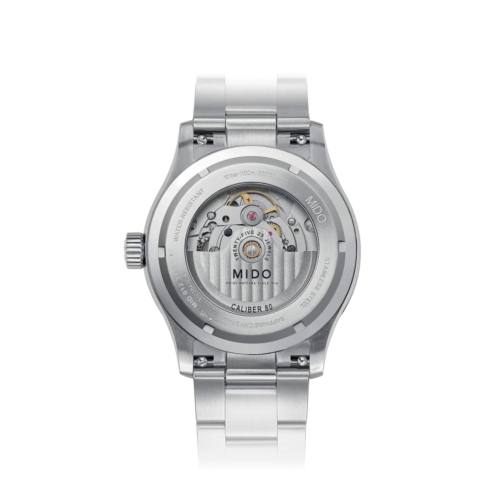 Вертикальная атласная отделка градиентного циферблата Multifort M напоминает о характерных чертах коллекции Côtes de Genève. Безупречное люминесцентное покрытиеЛюминесцентное покрытиеПозволяет считывать показания времени в темноте. Производители наносят на стрелки, часовые индексы, безель или поверхность циферблата светонакопительный состав, дающий холодное свечение. Super-LumiNova® создает контраст и читаемость на стрелках и круглых указателях. Легендарная надежность Multifort соответствует ритму знаменитого калибра 80. Запас хода до 80 часов обеспечивается Nivachron™Nivachron™Специально разработанный инновационный сплав Nivachron™ повышает устойчивость часов к воздействию магнитных полей. – революционного материала, обеспечивающего потрясающую точность. Mido предлагает Multifort M с системой смены ремня без инструментов, в стальном или текстильном исполнении на резиновой основе.