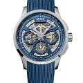 Швейцарские мужские наручные часы Mido Multifort Skeleton Chronograph M038.662.17.040.00, механический механизм с высокой точностью. Циферблат c сапфировым стекломСапфировое стеклоПрочный и надёжный материал из кристалла сапфира синтетического происхождения, характеризующийся особой твёрдостью и устойчивостью к царапинам и повреждениям., устойчивым к появлению царапин и обладающее высокой прозрачностью. Класс водозащиты: 100 метров, позволит плавать, нырять и заниматься другими водными видами спорта. Часы оснащены люминесцентным покрытиемЛюминесцентное покрытиеПозволяет считывать показания времени в темноте. Производители наносят на стрелки, часовые индексы, безель или поверхность циферблата светонакопительный состав, дающий холодное свечение., обеспечивающим отличную видимость даже при слабом освещении. Корпус часов изготовлен из стали. Часы с балансом из Nivachron™Nivachron™Специально разработанный инновационный сплав Nivachron™ повышает устойчивость часов к воздействию магнитных полей., обеспечивающим высокую устойчивость к магнитным полям и ударам. Часы с функциями хронографаХронографФункция позволяет измерять отрезки времени с особой точностью: часы, минуты, секунды. Верным признаком хронографа является наличие на циферблате 3 дополнительных окошек-счётчиков. и тахиметраТахиметрРазмеченная шкала, располагается на ободке или безеле часов. Тахиметр позволяет рассчитать скорость на определённом участке пути, расстояние измеряется в километрах или милях.. Каучуковый ремешок синего цвета со стандартной застежкой обеспечивает комфортное ношение.