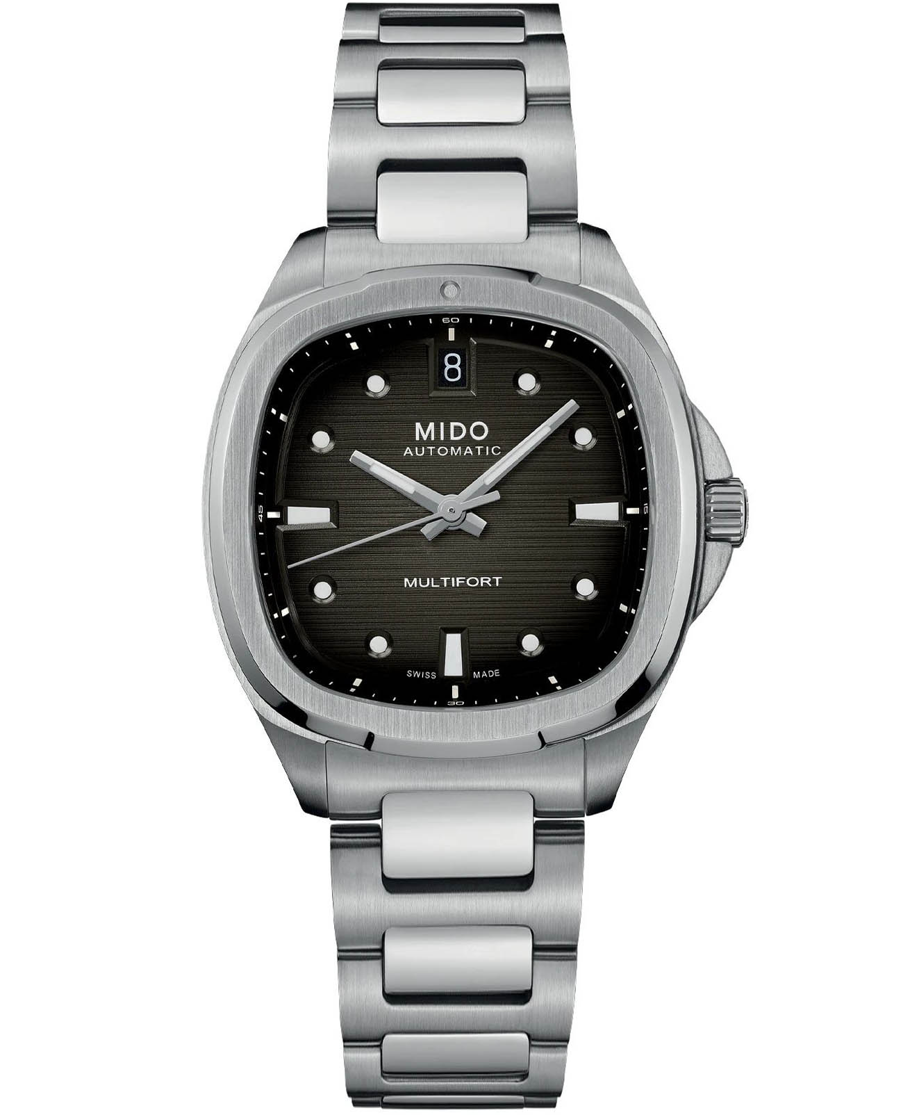 Женские швейцарские механические часы Mido Multifort TV 35 M049.307.11.081.00, механический механизм с высокой точностью.  Циферблат c сапфировым стекломСапфировое стеклоПрочный и надёжный материал из кристалла сапфира синтетического происхождения, характеризующийся особой твёрдостью и устойчивостью к царапинам и повреждениям., устойчивым к появлению царапин и обладающее высокой прозрачностью. Класс водозащиты: 100 метров. Корпус часов изготовлен из стали. Часы с балансом из Nivachron™Nivachron™Специально разработанный инновационный сплав Nivachron™ повышает устойчивость часов к воздействию магнитных полей., обеспечивающим высокую устойчивость к магнитным полям и ударам, а также оснащены люминесцентным покрытиемЛюминесцентное покрытиеПозволяет считывать показания времени в темноте. Производители наносят на стрелки, часовые индексы, безель или поверхность циферблата светонакопительный состав, дающий холодное свечение., обеспечивающим отличную видимость даже при слабом освещении. Браслет из стали с раскладной застёжкойРаскладная застёжкаТакой тип застёжки используется только на браслетах из металла. Она никогда не раскрывается полностью, происходит разделение на 2 и более частей. Раскладывающая застёжка снизит вероятность потери часов к минимуму. обеспечивает комфортное ношение. Окошко даты в положении 12 часов.