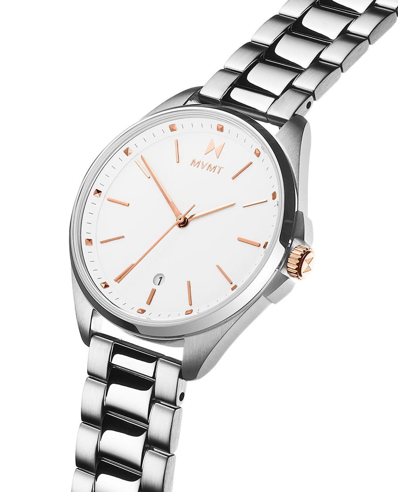 Женские кварцевые часы MVMT 28000001-D – лаконичная красота и изысканная элегантность. Оригинальная модель с классическим оформлением станет превосходным завершением образа, наделив его индивидуальным характером. Корпус выполнен из нержавеющей стали серебристого цвета, диаметром 36 мм и толщиной 8 мм, что обеспечивает долговечность и утончённый внешний вид. Закаленное минеральное стеклоМинеральное стеклоМинеральное стекло представляет собой искусственно выращенный минерал кварца. Такое стекло отличается особой устойчивостью к повреждениям и царапинам. Уступает по некоторым качествам сапфировому стеклу. защищает циферблат от царапин. Стальной браслет на раскладной застёжке с фиксаторомРаскладная застёжкаТакой тип застёжки используется только на браслетах из металла. Она никогда не раскрывается полностью, происходит разделение на 2 и более частей. Раскладывающая застёжка снизит вероятность потери часов к минимуму. обеспечивает комфортное ношение. Водозащита 50 метров позволит защитить корпус от случайных брызг или капель дождя. Окошко даты находится в положении 6 часов. Рифленая заводная головка с защитой. Женский аксессуар, который покорит вас своим элегантным дизайном. Эти часы станут изысканным акцентом в вашем образе, подчеркивая вашу утонченность и хороший вкус.