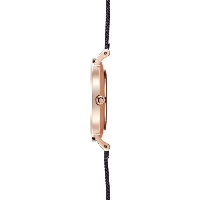 Аксессуар Mynte Rose привлекает игрой переливов розового золота, оттенок получен благодаря цветному IP-покрытиюIP-покрытиеМетод ионного напыления. Демонстрирует повышенную устойчивость к истиранию, окислению и химическим веществам. Под воздействием высокого давления и температуры около 1500°C молекулы металла надёжно соединяются с частицами корпуса часов.. Модель на стальном браслете миланского плетения станет привлекательной деталью любого образа. Японский кварцевый механизм Miyota. Экологичная батарейка. Минеральное стекло. Водостойкость 3 бар.