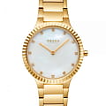 Женские наручные часы Obaku Linje Jude V292LXGWSG, кварцевый механизм с высокой точностью. Класс водозащиты: 30 метров, позволит защитить корпус от случайных брызг или капель дождя. Корпус и браслет часов изготовлены из нержавеющей стали с IP-покрытиемIP-покрытиеМетод ионного напыления. Демонстрирует повышенную устойчивость к истиранию, окислению и химическим веществам. Под воздействием высокого давления и температуры около 1500°C молекулы металла надёжно соединяются с частицами корпуса часов.. Стальной браслет на раскладной застёжкеРаскладная застёжкаТакой тип застёжки используется только на браслетах из металла. Она никогда не раскрывается полностью, происходит разделение на 2 и более частей. Раскладывающая застёжка снизит вероятность потери часов к минимуму.. Минеральное стеклоМинеральное стеклоМинеральное стекло представляет собой искусственно выращенный минерал кварца. Такое стекло отличается особой устойчивостью к повреждениям и царапинам. Уступает по некоторым качествам сапфировому стеклу. устойчивое к мелким механическим повреждениям. Циферблат инкрустирован кристаллами.