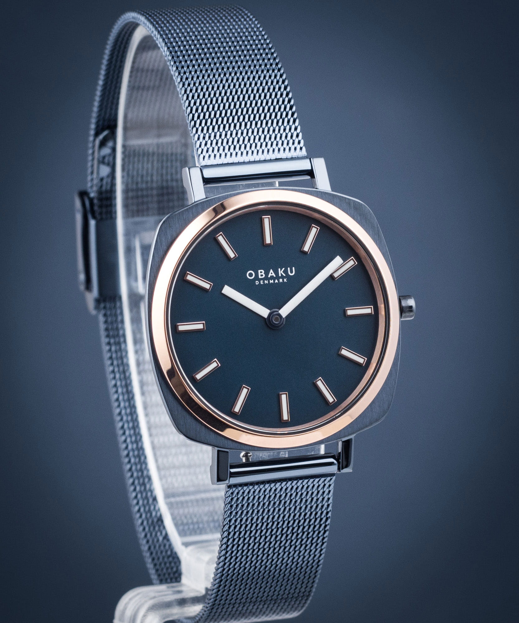 Женские наручные часы Obaku Mesh V296LXSLML с надёжным кварцевым механизмом. Корпус и браслет часов изготовлены из нержавеющей стали с IP-покрытиемIP-покрытиеМетод ионного напыления. Демонстрирует повышенную устойчивость к истиранию, окислению и химическим веществам. Под воздействием высокого давления и температуры около 1500°C молекулы металла надёжно соединяются с частицами корпуса часов.. Стальной браслет миланского плетения на раскладном замкеРаскладной замокДанный вариант застежки используется только на часах с металлическим браслетом. Отличительная особенность такого крепления в том, что длина браслета становится универсальной и вы можете самостоятельно отрегулировать нужный вам размер – застежка просто двигается по браслету часов.. Минеральное стеклоМинеральное стеклоМинеральное стекло представляет собой искусственно выращенный минерал кварца. Такое стекло отличается особой устойчивостью к повреждениям и царапинам. Уступает по некоторым качествам сапфировому стеклу. устойчивое к мелким механическим повреждениям. Класс водозащиты: 30 метров, позволит защитить корпус от случайных брызг или капель дождя. Стрелки и метки с люминесцентным покрытиемЛюминесцентное покрытиеПозволяет считывать показания времени в темноте. Производители наносят на стрелки, часовые индексы, безель или поверхность циферблата светонакопительный состав, дающий холодное свечение..