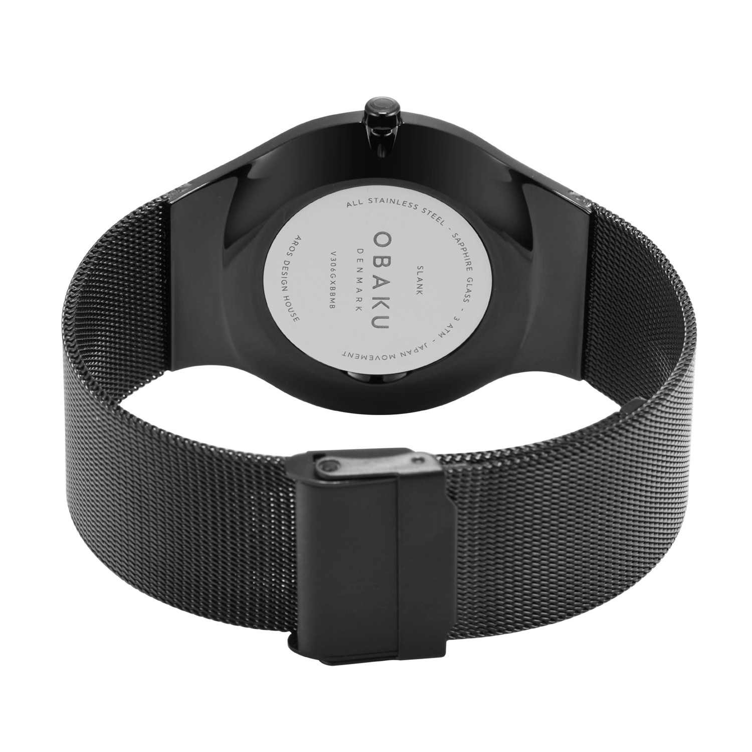 Obaku Slank V306GXBBMB – элегантные мужские часы, сочетающие современный дизайн и высокое качество исполнения. Корпус диаметром 40 мм выполнен из нержавеющей стали с PVD-покрытиемPVDУльтратонкое покрытие наносится в технике вакуумного напыления, сочетает в себе нитрид титана особой прочности со слоем золота или оксида хрома. Несёт в себе декоративную или защитную функцию. в чёрном цвете, придающим модели стильный и современный вид. Чёрный циферблат защищён сапфировым стекломСапфировое стеклоПрочный и надёжный материал из кристалла сапфира синтетического происхождения, характеризующийся особой твёрдостью и устойчивостью к царапинам и повреждениям., устойчивым к царапинам, обеспечивая долговечность и сохранение внешнего вида. Часы оснащены точным кварцевым механизмом, обеспечивающим надёжность и точность хода. Минималистичный дизайн циферблата подчёркивает скандинавскую эстетику и утончённость. Браслет из нержавеющей стали с PVD-покрытиемPVDУльтратонкое покрытие наносится в технике вакуумного напыления, сочетает в себе нитрид титана особой прочности со слоем золота или оксида хрома. Несёт в себе декоративную или защитную функцию. и сетчатым плетением оснащён раскладным замкомРаскладной замокДанный вариант застежки используется только на часах с металлическим браслетом. Отличительная особенность такого крепления в том, что длина браслета становится универсальной и вы можете самостоятельно отрегулировать нужный вам размер – застежка просто двигается по браслету часов., обеспечивающей комфортное ношение и надёжную фиксацию на запястье. Водонепроницаемость до 30 метров (3 ATM) защищает модель от случайных брызг и дождя, делая её идеальным выбором для повседневного использования.