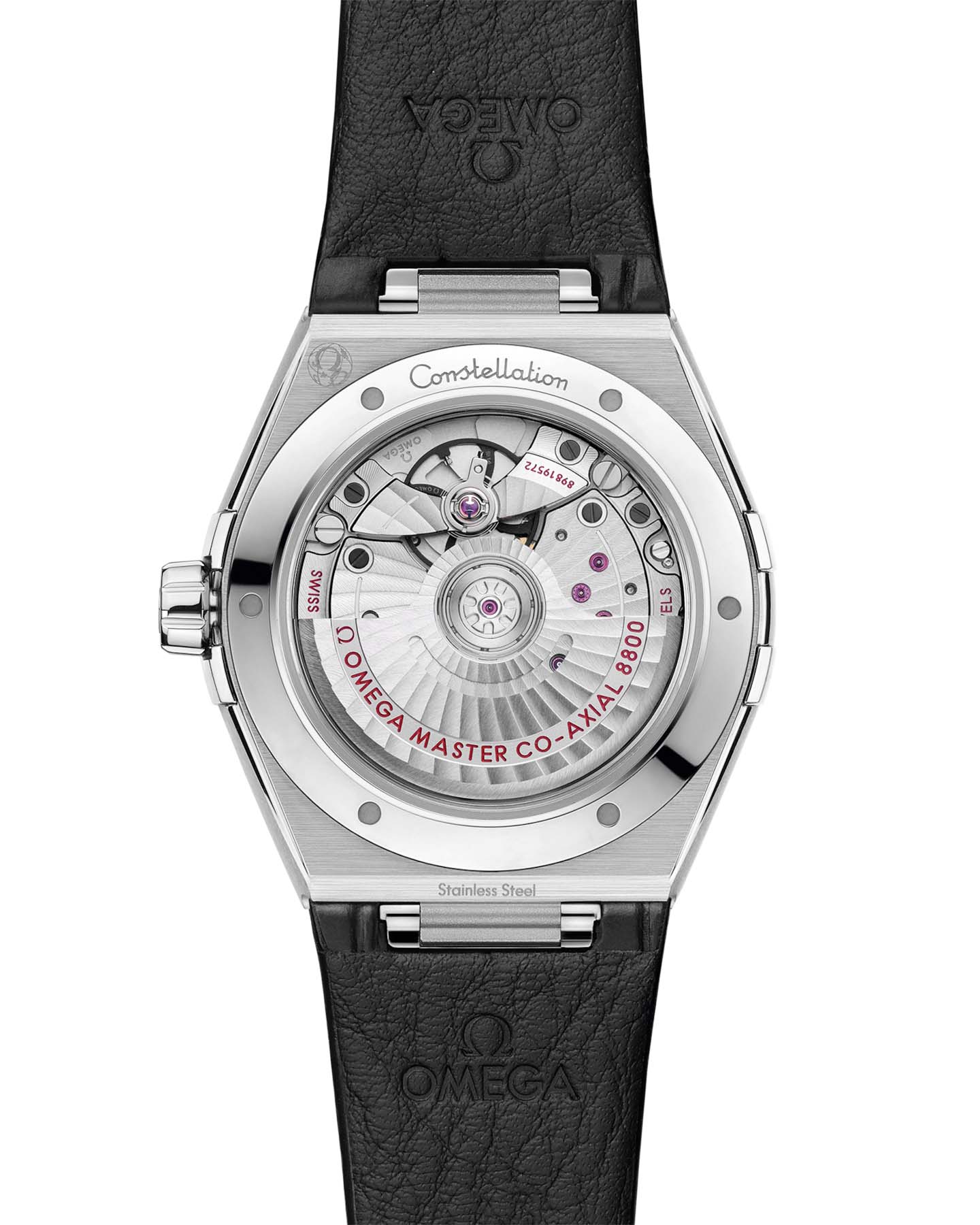 . Часы представлены на черном кожаном ремешке и оснащены коаксиальным хронометром OMEGA Master Chronometer Calibre 8800, который виден через куполообразное сапфировое стеклоСапфировое стеклоПрочный и надёжный материал из кристалла сапфира синтетического происхождения, характеризующийся особой твёрдостью и устойчивостью к царапинам и повреждениям., устойчивое к царапинам.