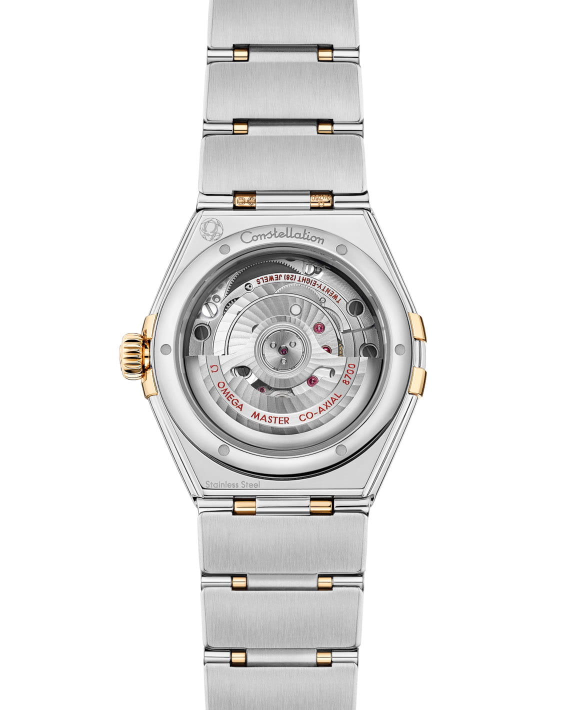 Moonshine™, а также россыпь бриллиантов в оправах из того же благородного металла, сверкающих как далекие созвездия. Часы завершаются интегрированным браслетом с инновационной системой микроподгонки, а их космическую душу составляет коаксиальный хронометр OMEGA Master Chronometer 8700, чье совершенство можно рассмотреть сквозь кристально прозрачное сапфировое стеклоСапфировое стеклоПрочный и надёжный материал из кристалла сапфира синтетического происхождения, характеризующийся особой твёрдостью и устойчивостью к царапинам и повреждениям. задней крышки.