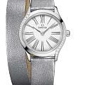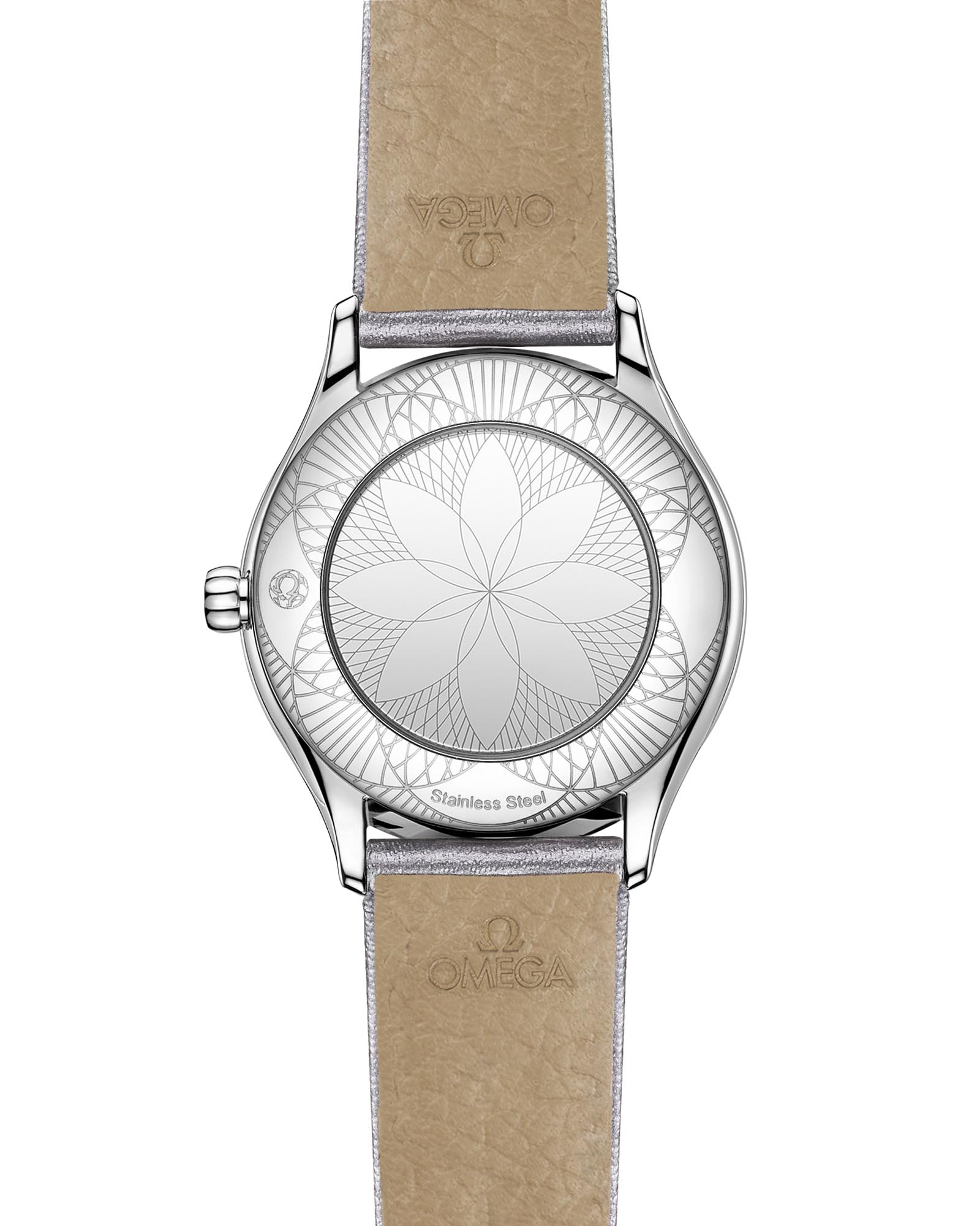 Mini Trésor — сияющий шедевр женской коллекции OMEGA, где 26-мм корпус из нержавеющей стали украшен волнообразными рядами бриллиантов, а заводная головка с алмазом в обрамлении красной гибридной керамики добавляет дерзкий акцент. Куполообразный циферблат из белой эмали "Grand Feu" с сероватым оттенком и изящными римскими цифрами создает эффект парящей легкости. Двойной переливающийся кожаный ремешок серого цвета с фирменной застежкой Trésor подчеркивает утонченный характер модели. Внутри скрыт точный кварцевый механизм OMEGA 4061, дополненный зеркальной задней крышкой с металлизированным узором "Her Time" — воплощение современной женственности и часового мастерства.