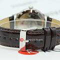 Ремешок выполнен из натуральной кожи с тиснением под крокодила и дополнен классической пряжкой. Его тёплый коричневый оттенок удачно сочетается с оттенком циферблата и добавляет образу завершённости. Водонепроницаемость — до 3 ATM, что подходит для защиты от случайных брызг и дождя.